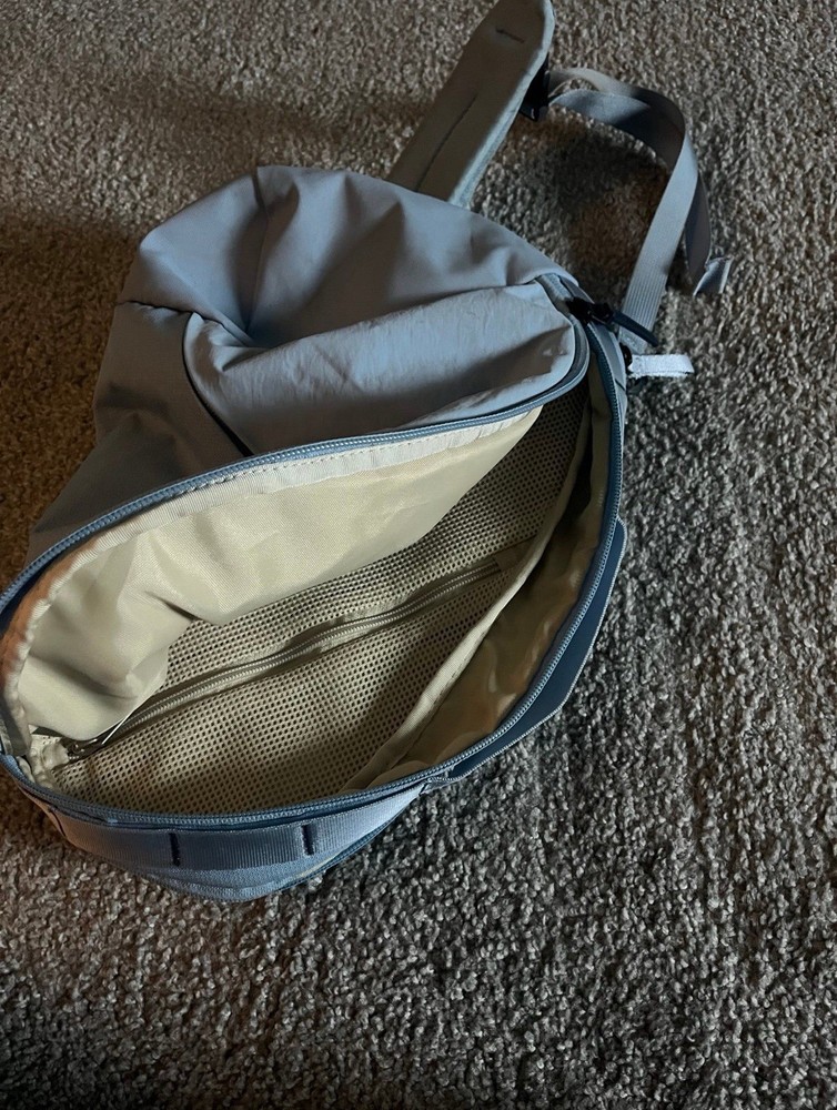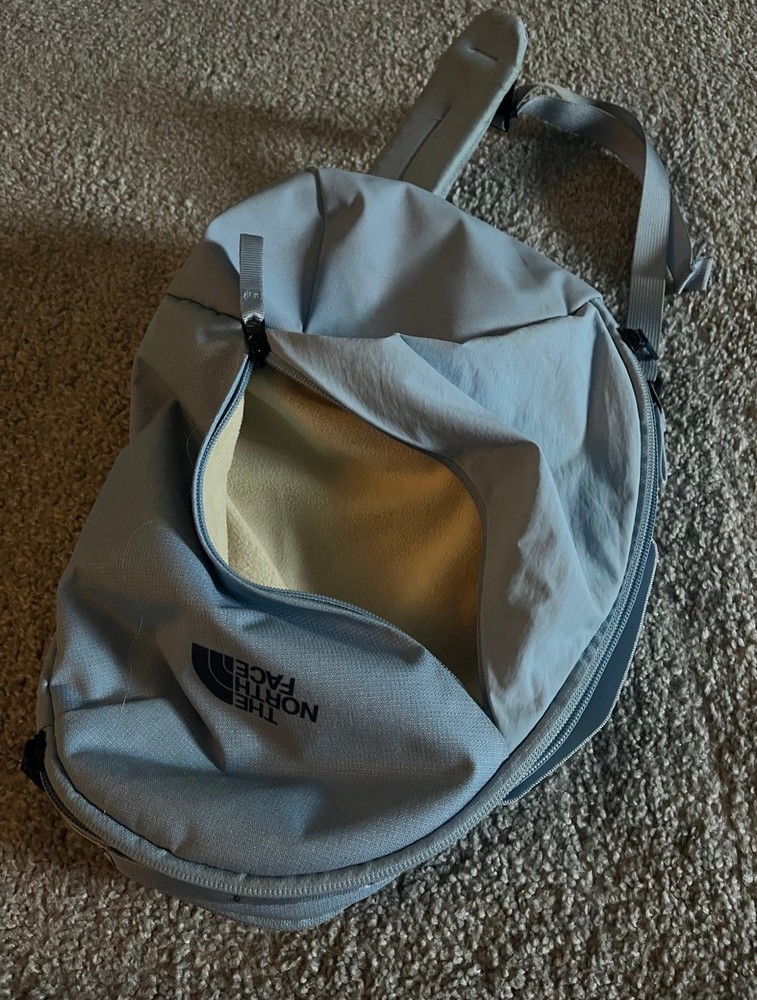 Model: The North Face Sling Number of Pockets: 5 Brand: The North Face Size: Medium Item Width: 7" Accents: strap Product Line: borealis sling Sport/Activity: Hiking Color: Blue Personalized: No Frame Material: Nylon Vintage: No Type: Strap Buckle Number of Dividers: 1 Position: adjustable Season: Fall Handle/Strap Material: Nylon Features: Adjustable Size, External Pockets, Padded Item Height: 13" Trim Material: Nylon Department: Unisex Adults Country/Region of Manufacture: Indonesia Material: Polyester Closure: Zip MPN: NF0A52UPO9J-OS Seller Notes: “Great condition! Only used once”