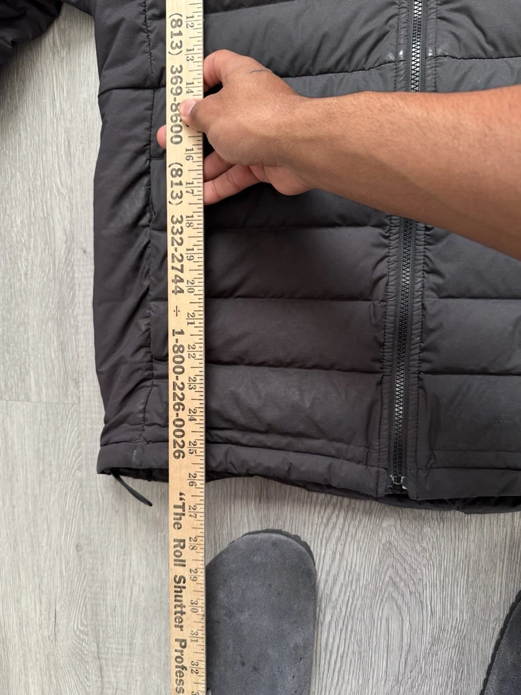 The North Face Hooded Insulated 600-Down Black Puffer Jacket in Men’s Size Large is a stylish and functional outerwear piece perfect for travel and casual occasions. Made with a durable polyester outer shell and lined with cozy nylon, this jacket provides warmth with its 600-down insulation. The hooded collar and quilted design add a classic touch, while the TNF Black color and logo accents give it a sleek and modern look. With its zip closure and machine washable fabric, this jacket is both practical and easy to care for, making it a versatile addition to any wardrobe.
