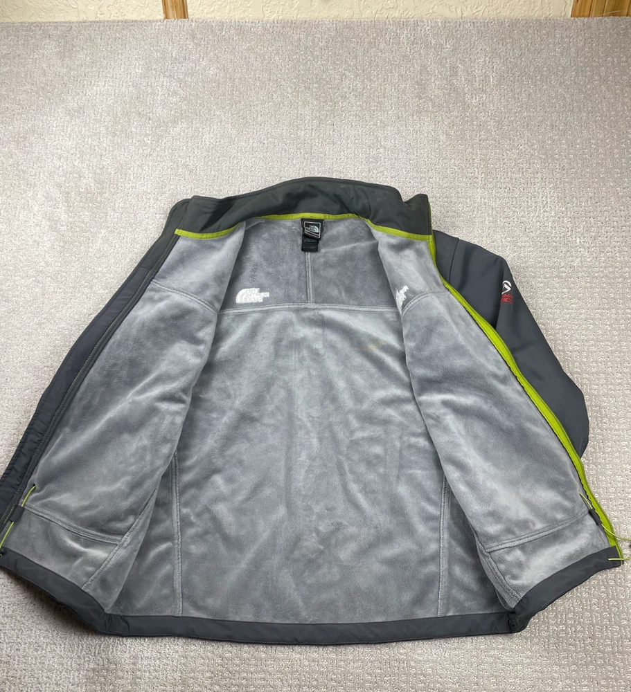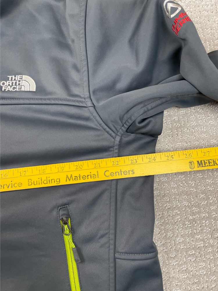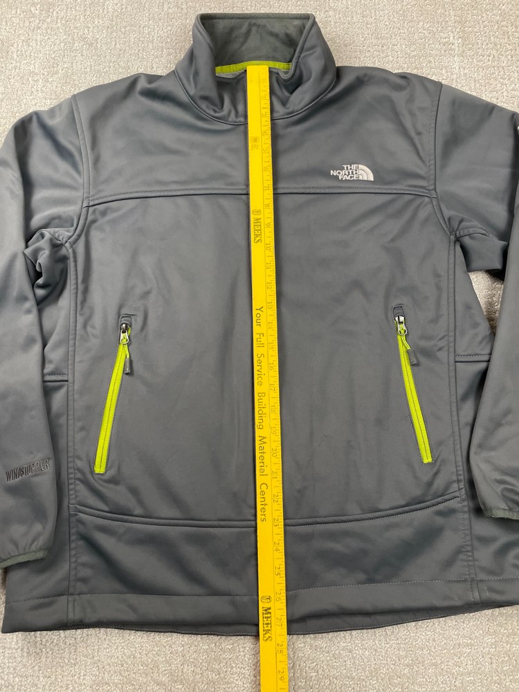 The North Face Men's L Gray Summit Series Windstopper Softshell Jacket is a versatile and stylish outerwear option perfect for travel and casual occasions. Made from polyester with a softshell fabric type, this jacket features a full zip closure and a stand-up collar for added comfort and style. The jacket is designed for winter, fall, and spring seasons, with a mid-length fit suitable for outdoor activities like hiking. With its solid gray color and The North Face logo accents, this jacket combines practicality with a touch of outdoor theme for a timeless look.