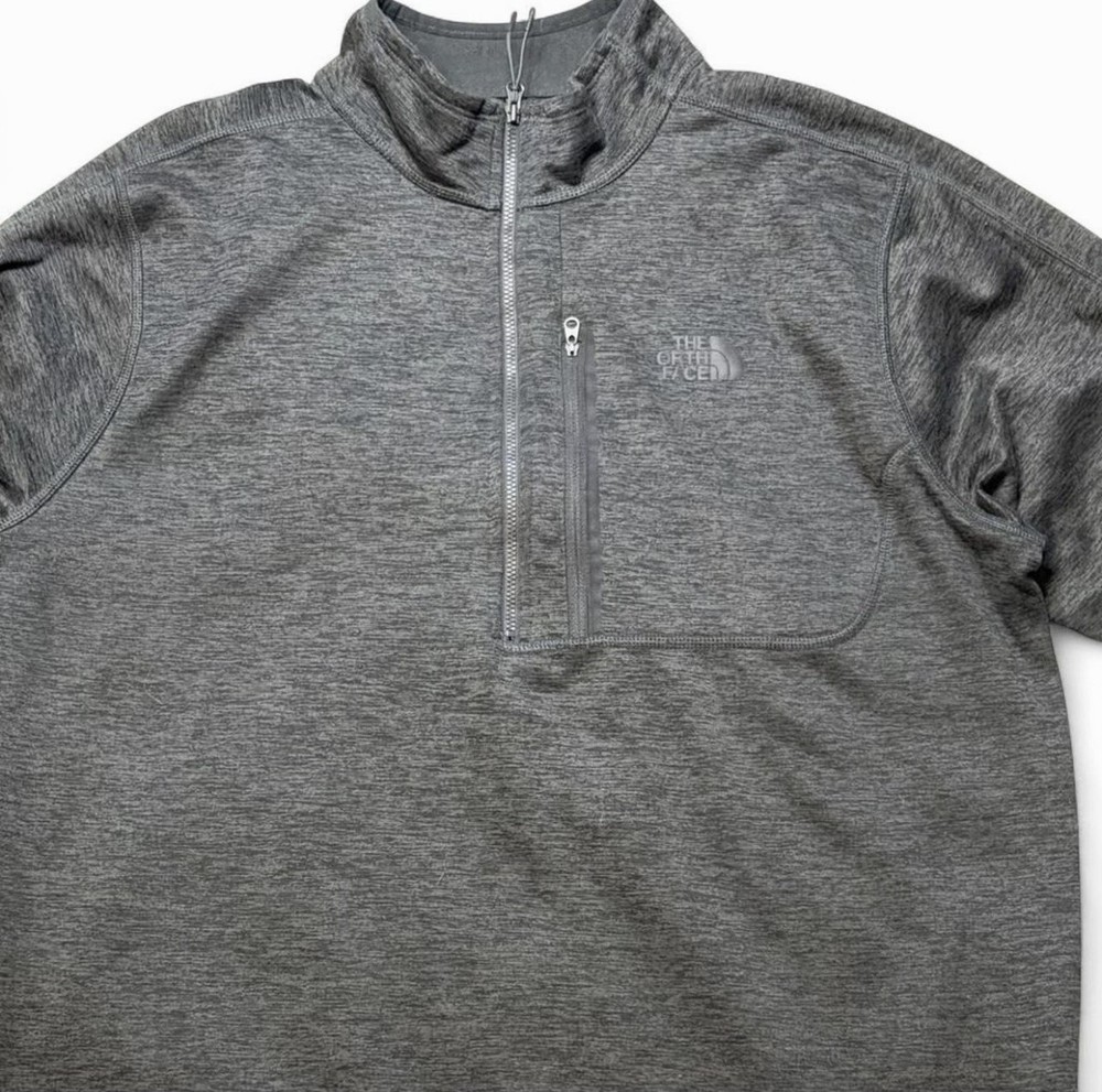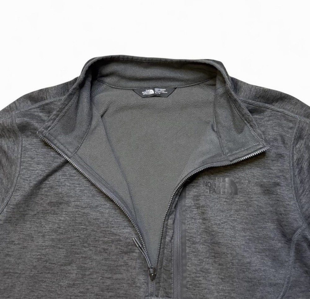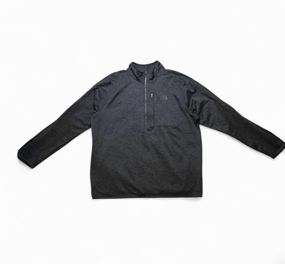 The North Face Men's Fleece 1/4 Zip Pullover Jacket XL in Gray is a versatile outerwear piece perfect for outdoor activities in the winter, fall, and spring seasons. Made from polyester with a cozy fleece lining, this mid-length jacket features a solid gray color and accents with the iconic brand logo. The 1/4 zip closure makes it easy to layer over other clothing for added warmth, while the regular fit ensures comfort for a variety of activities like walking, hiking, and running. Ideal for travel, casual wear, work, and business attire, this jacket is a stylish and practical choice for any man looking to stay comfortable outdoors in colder weather.