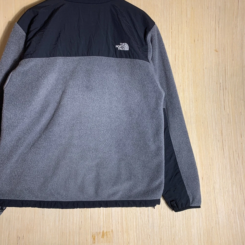 The North Face Sweater is a men's gray knit sweater with a tight-knit pattern and a full zip-up style. It features long sleeves, a crew neck, and is made of cotton material. The sweater is designed with zipper accents and an embroidered logo, making it suitable for various occasions like travel, weddings, parties, casual wear, and even formal or work settings. This versatile sweater is a size large and has a regular fit, perfect for those looking for a comfortable yet stylish addition to their wardrobe, especially during the colder seasons.