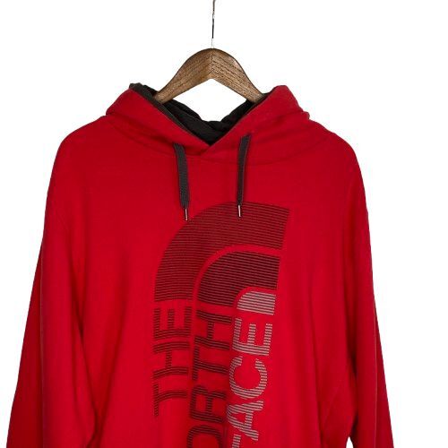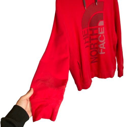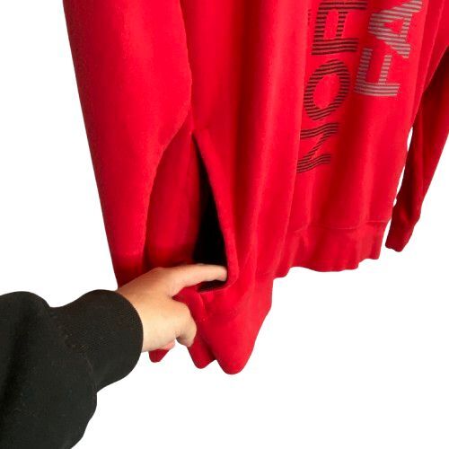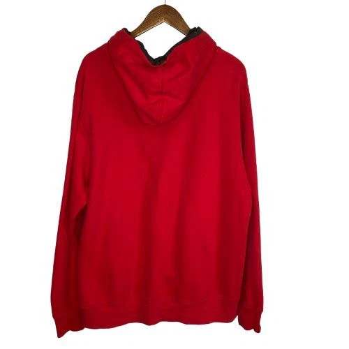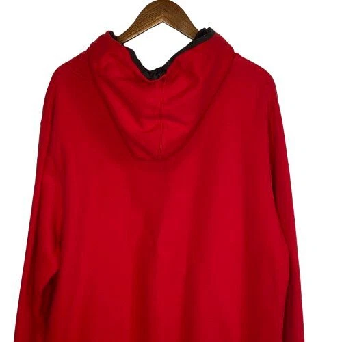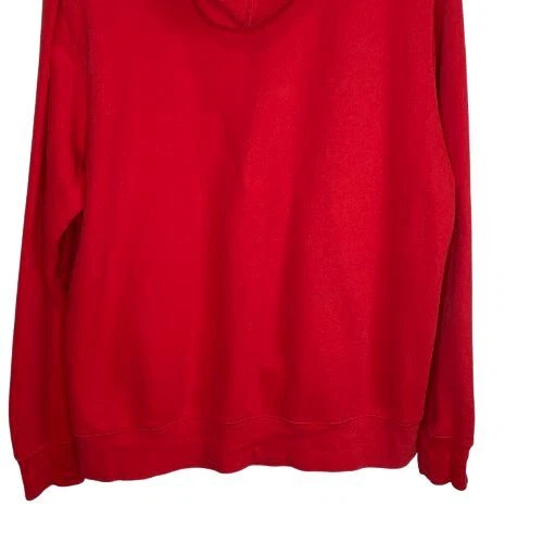 Very Good Pre-Owned Condition (see pics for details). No holes, rips or stains. Pullover style Hoodie with drawstring Long sleeves Fleece lined Large logo spell out on front Kangaroo pocket Color - red and gray 80% cotton, 20% polyester Machine washable Style profile - casual, warm, comfy, cozy, sporty, gorpcore, activewear Approximate flat lay measurements: Shoulder to bottom hem length - 30" Pit to pit width - 26" Please compare measurements to something you already own to verify size and fit We are happy to answer any questions! We ship the next business day!