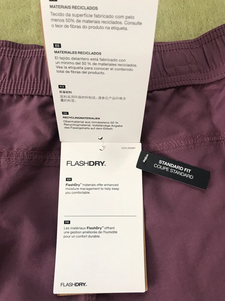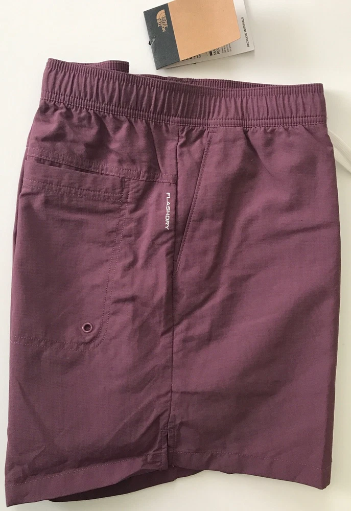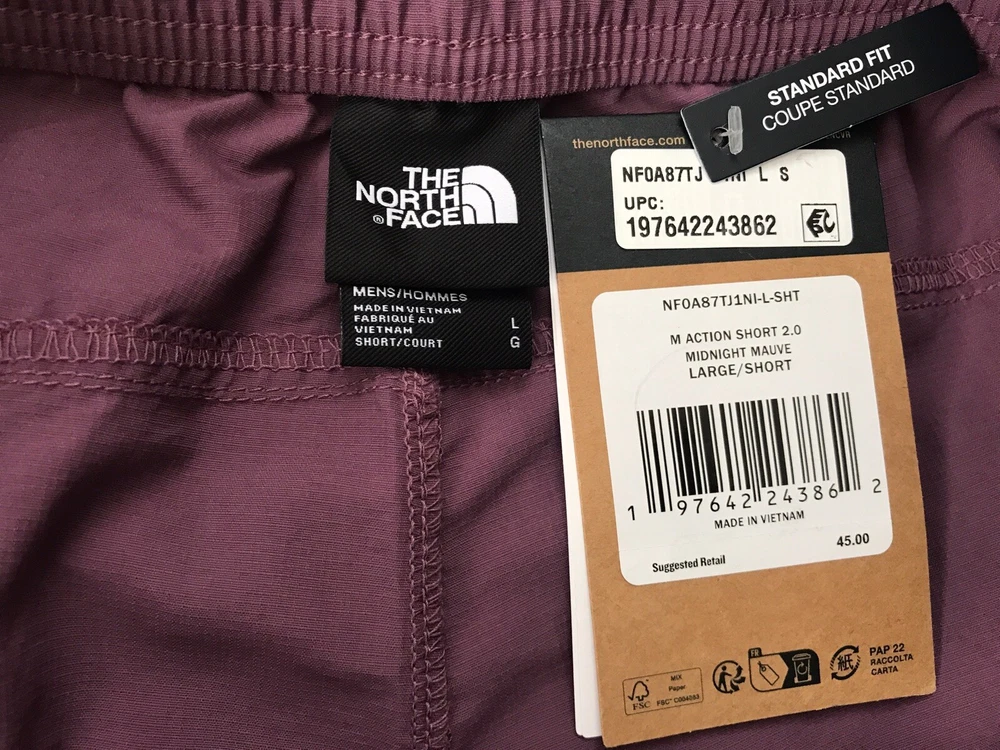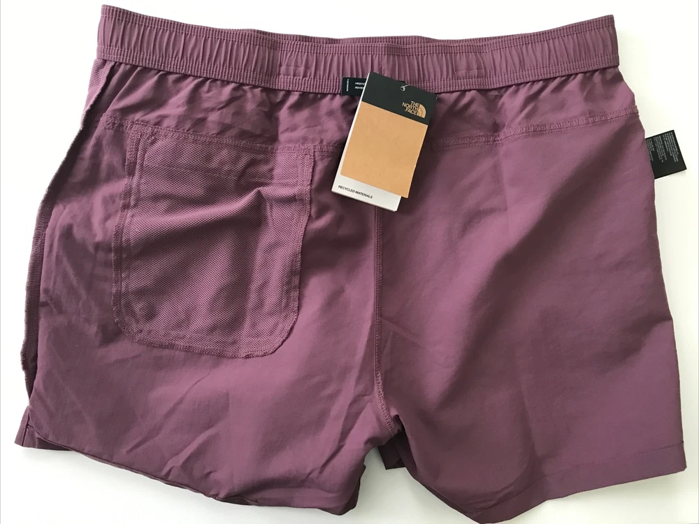 The North Face Men’s Action Shorts 2.0 A smart choice for any warm-weather outing, the Men’s Action Shorts 2.0 offer versatile performance. Features like durable moisture-managing FLASHDRY-XD™ fabric, split hems for mobility and an elastic waistband mean these shorts are ready for anything. New with tags. Midnight Mauve Men’s LG 5” inseam Regular fit Open side-seam hand pockets Drop-in back pocket Split hem at side seams for increased mobility Heat transfer logo on left thigh 52% recycled nylon / 48% nylon Encased-elastic waistband with a drawcord for adjustability FlashDry-XD™ materials offer enhanced moisture management to help keep you comfortable and increased abrasion resistance for extra durability Made in Vietnam