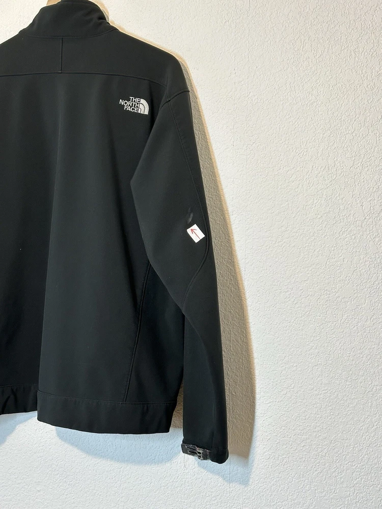 The North Face Jacket Mens Large Black Apex Soft Shell Full Zip Good READ There Are 2 Marks Front Do Not Go All The Way Through Right Sleeve Light Mark Back And Wrist Straps Have Wear. SEE LAST 3 PICTURES