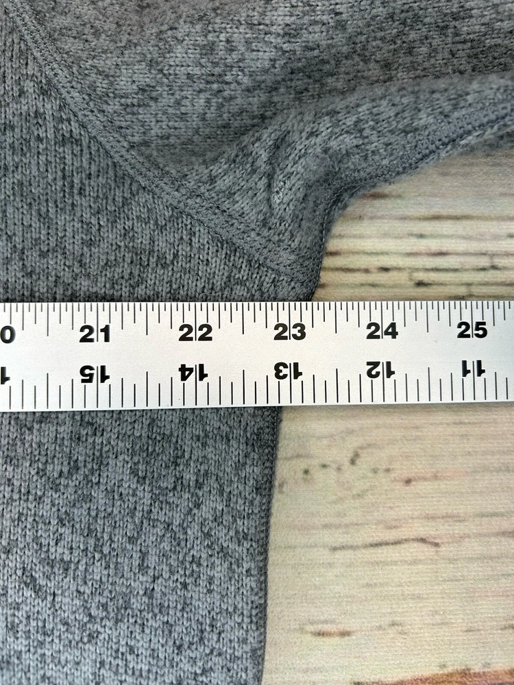 This is a men's gray 1/4 zip sweater by The North Face, made of polyester fleece fabric. The sweater features a mock neck and long sleeves, suitable for travel and casual occasions in winter, fall, and spring. It is machine washable and has The North Face logo as accents, offering a regular fit in size M. This pullover sweater does not have a graphic print and is designed for comfort and warmth during outdoor activities. Check pictures for condition and measurements for size.