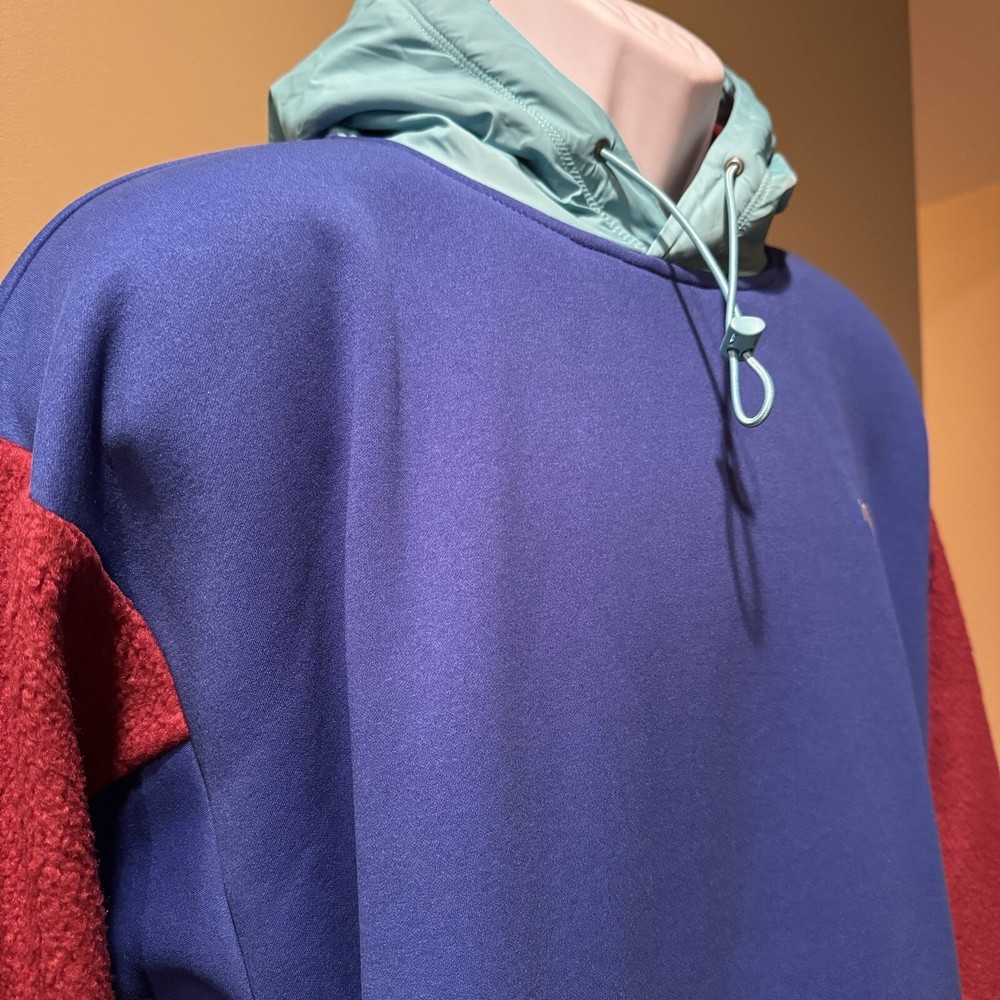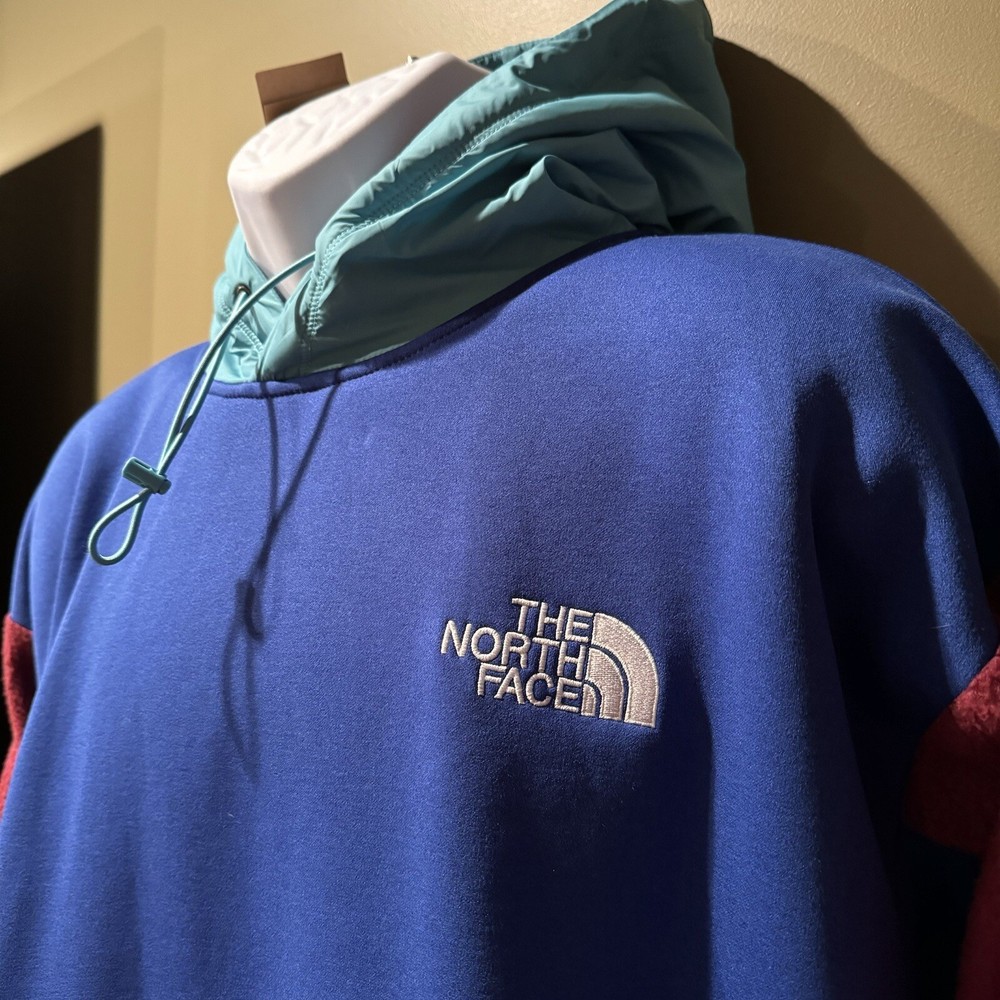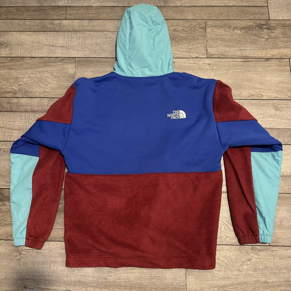 Introducing THE NORTH FACE Men's Relaxed Fit Pullover Hoodie Jacket in Regal Red/TNF Blue, size M. This stylish jacket is perfect for casual wear, walking, hiking and other outdoor activities. Designed with a polyester outer shell material, this fleece jacket comes with new tags and is sure to keep you warm and comfortable. The jacket is made by The North Face, a reputable brand in the clothing industry. It features a relaxed fit and is suitable for men of all sizes. The jacket comes in a trendy multicolor design that is perfect for any occasion. Get your hands on this amazing jacket today and elevate your outdoor wardrobe.