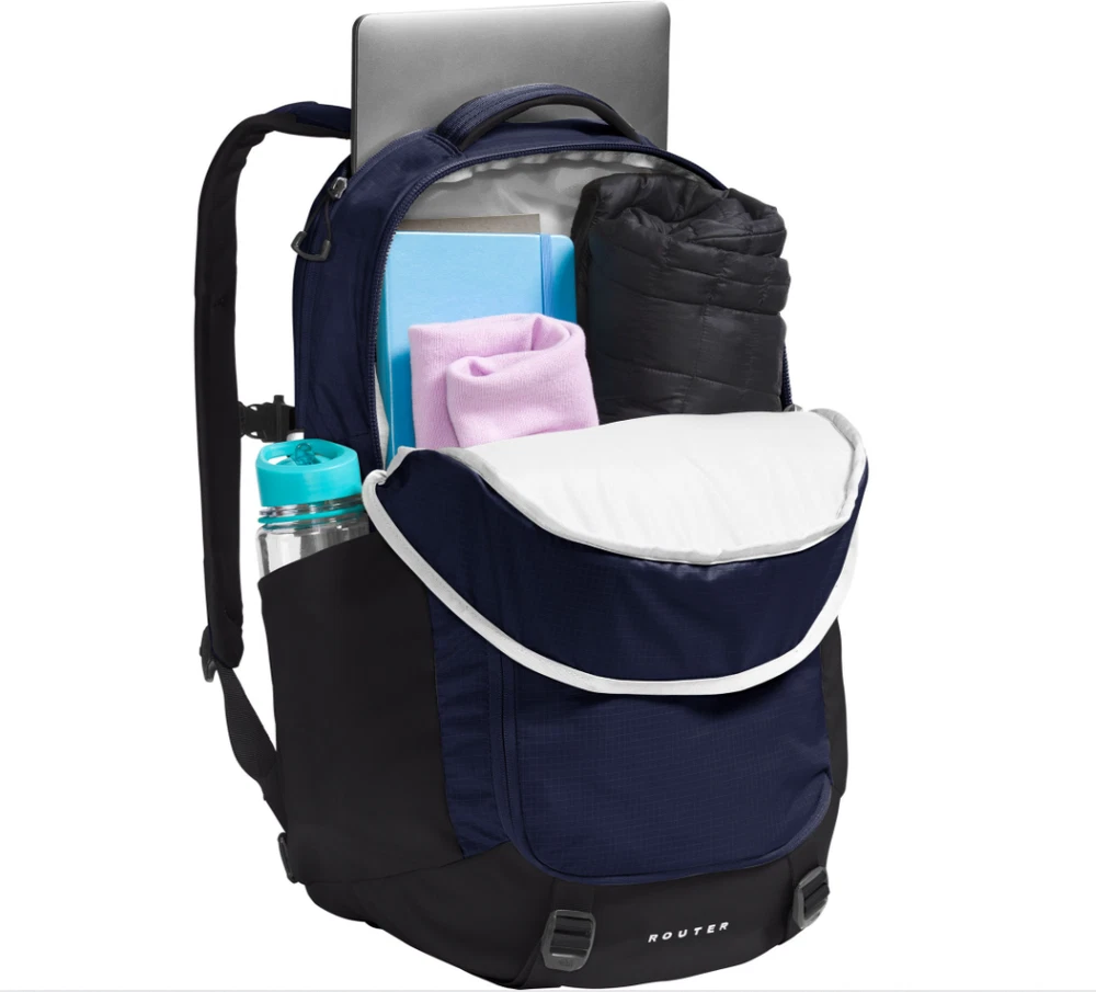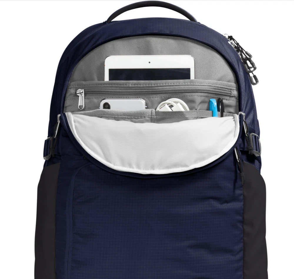 About This Item Product Information SUSTAINABILITY: Durable water-repellent finish provides enhanced protection and is free of PFC's SPECS: Dimensions: 12.5” x 9” x 21” Laptop sleeve: 14.75” x 12” Volume: 40 liters DESIGN & DETAILS: Updated FlexVent™ suspension system increases breathability and has articulated shoulder straps, a rounded back panel and stitch lines for comfort, and soft-touch chemise fabric 360-degree reflectivity helps increase visibility Stand-up design Large main compartment for books and binders Front compartment has internal organization with secure-zip pockets and a padded tablet sleeve Dedicated, highly protective laptop compartment fits up to 17” laptops Two durable water bottle pockets Large, easy-to-access, external D-zip organizational pocket U-pull YKK® zippers are easy to grab Two comfortable, padded grab handles, one on top and one on front Sternum strap with whistle buckle Removable waist belt Side compression straps Bottom compression Accredited by the American Chiropractic Association Brand : The North Face Country of Origin : Imported Style : NF0A52SFZ Fabric : Solid: 300D heathered recycled polyester with non-PFC DWR finish ; Heather: 210D recycled nylon ripstop with non-PFC DWR finish