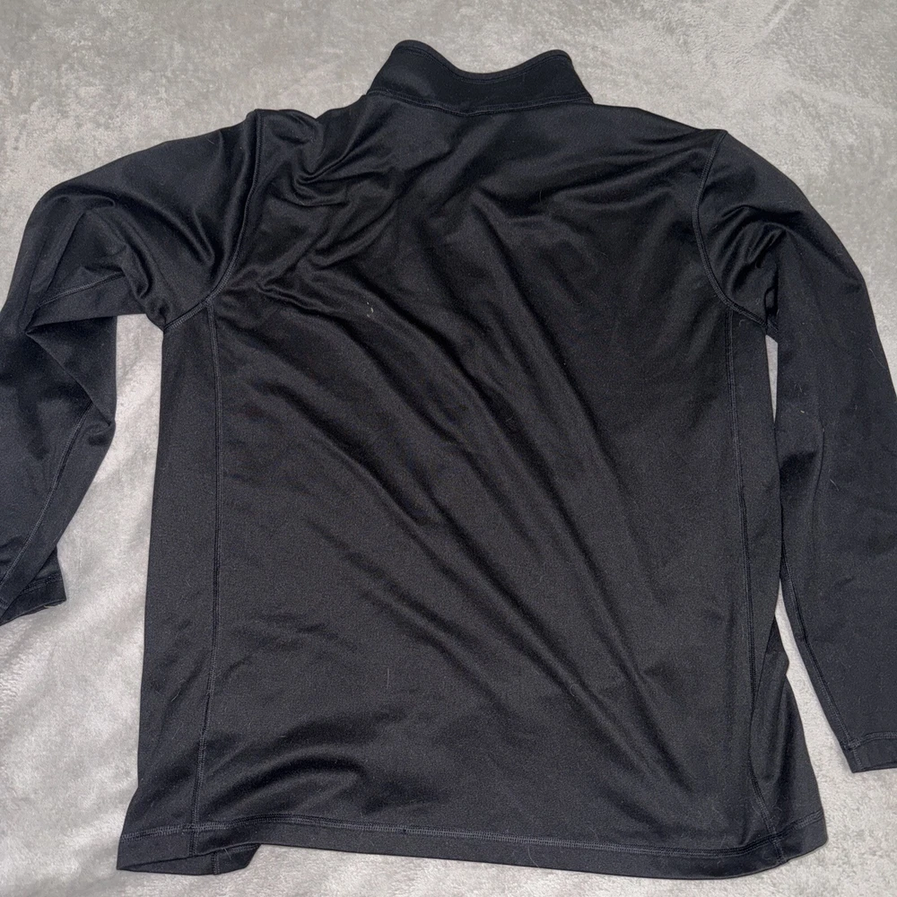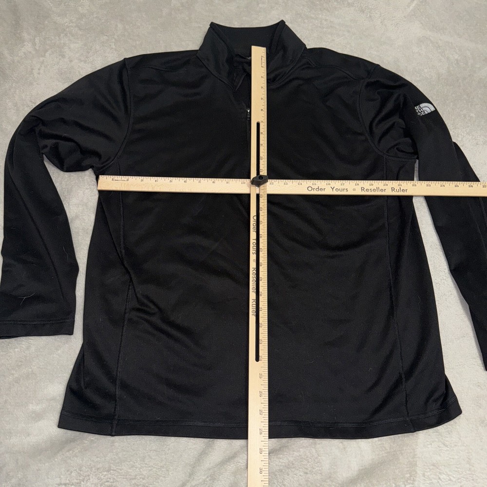 Small spot on the back. See pics. This black sweatshirt from The North Face is a must-have for any outdoor activity. With a solid pattern and embroidered logo accents, it features a collared neckline and long sleeves with a 1/4 zip closure. Made from soft fleece fabric, it is comfortable and machine washable for easy care. This sweatshirt is designed for men in size XL with a regular fit and is perfect for walking in the winter, fall, or spring seasons. It is a pullover style with no graphic print and is not vintage or personalized. Made in Nicaragua, this sweatshirt is ideal for any outdoor enthusiast who wants to stay warm and stylish.