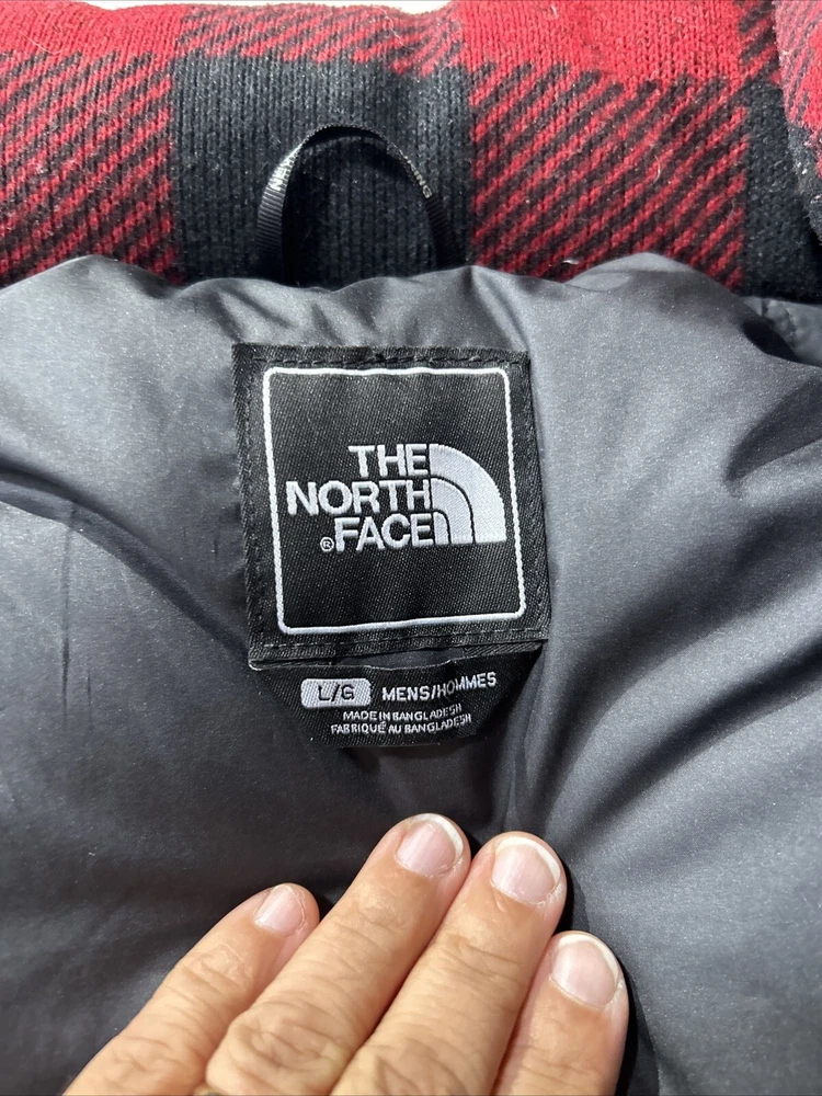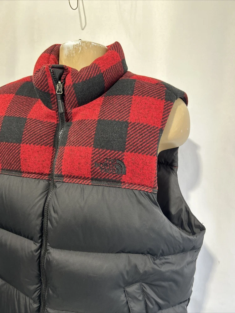 The North Face Nuptse 700 LUMBERJACK Red Plaid Down Puffer Vest Jacket Mens Sz L