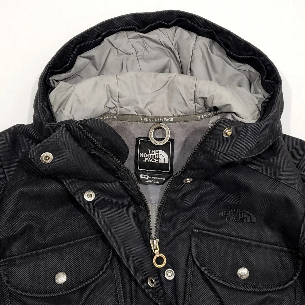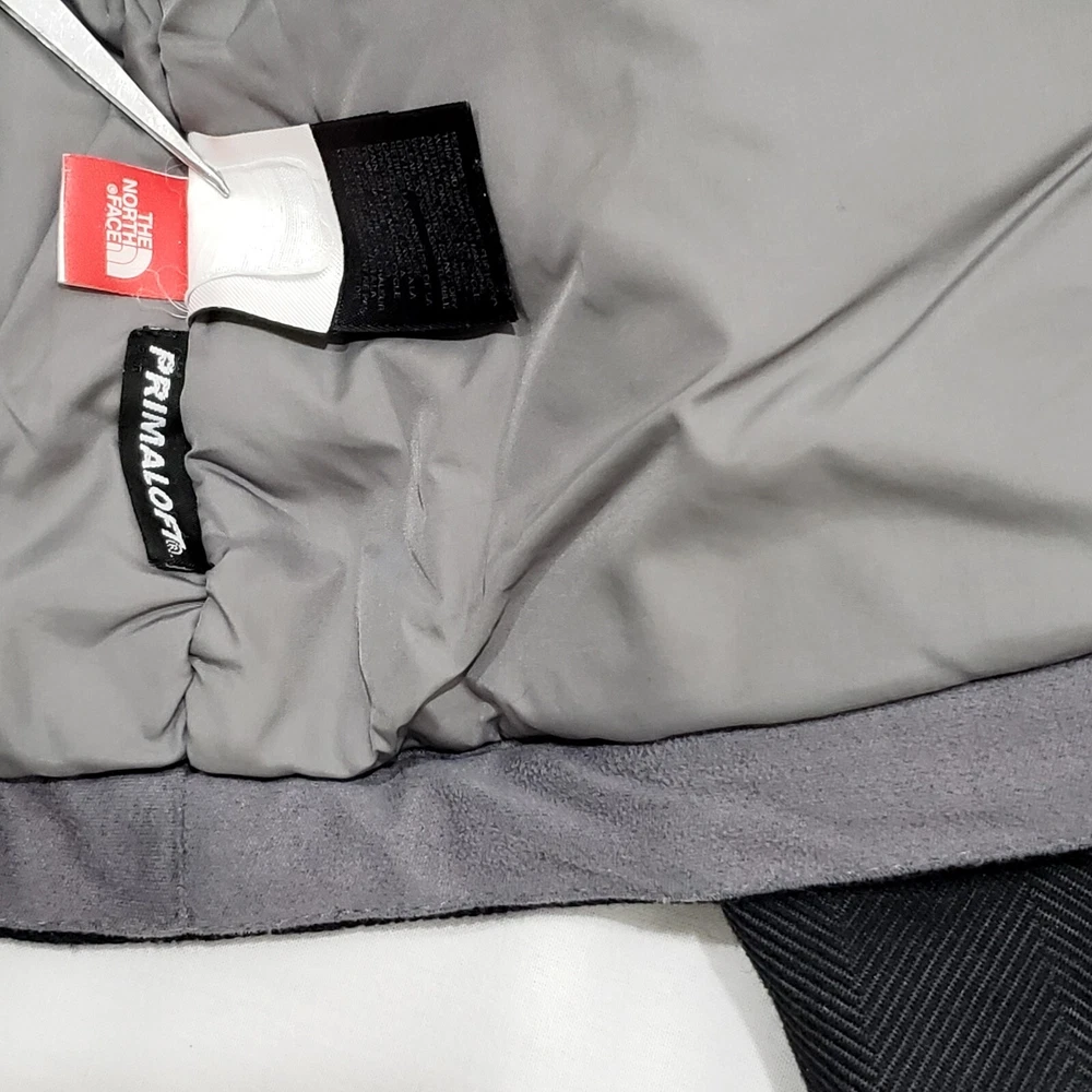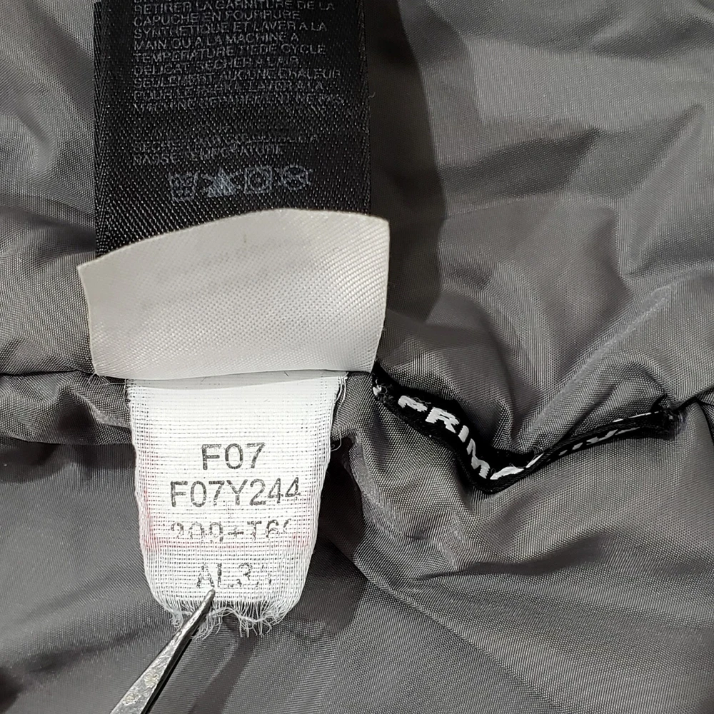 STYLE ID: F07Y244 MATERIAL: Polyester CONDITION: Used, very good SIZE: M MEASUREMENTS (See diagram): Chest (pit to pit): 20.5" (52cm) Waist (adjustable): 17.5" (44cm) Shoulders: 17" (43cm) Sleeves: 25" (64cm) Length (neck to hem): 25" (64cm) Compare measurements with your best fitting similar garment laid flat -- DETAILS -- Detachable fur trim is missing. Herringbone pattern with brushed finish, Water repellent PRIMALOFT® material, Zip and button snap flap fastening, Belt with buckle, 2 chest pockets, 2 hand pockets, 2 inside pockets with media feature, logo embroidered on chest and back shoulder