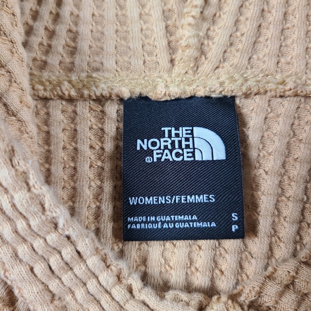 Experience the perfect blend of comfort and style with The North Face Women's Chabot Hoodie in a delightful almond butter color. Designed for those who appreciate a classic sporty look with a thermal waffle knit fabric, this hoodie promises to keep you warm without compromising on fashion. Its long raglan sleeves and hooded feature make it an ideal choice for outdoor activities like walking, hiking, and running, ensuring you stay cozy in all seasons. Crafted from soft cotton and featuring a solid pattern with The North Face logo accent, this pullover hoodie is as versatile as it is fashionable. The machine-washable garment offers a regular fit in a size small, perfect for activewear or casual outings. Whether you're hitting the trails or running errands, this hoodie is a dependable addition to your wardrobe, ready to tackle the elements while showcasing your love for the great outdoors.