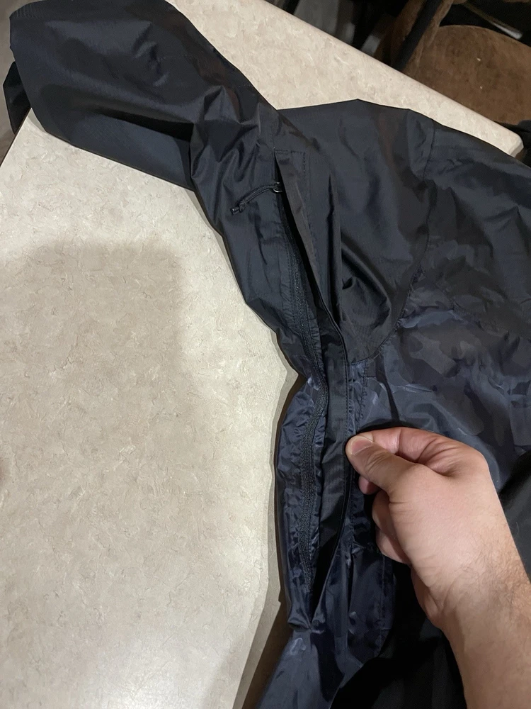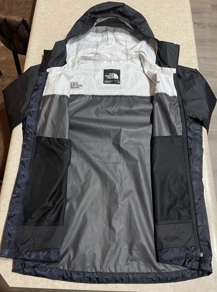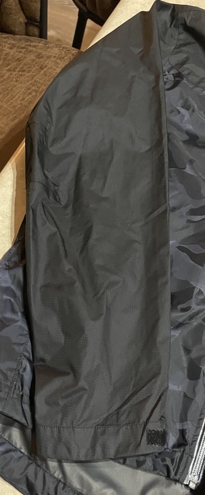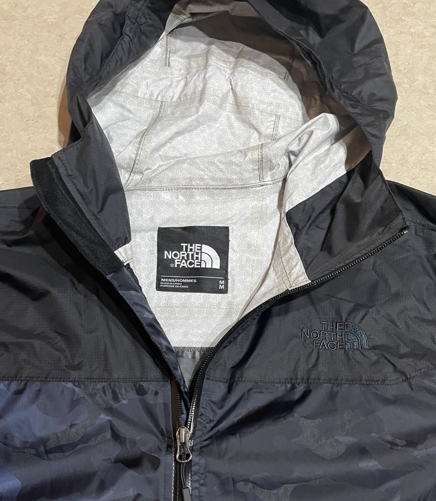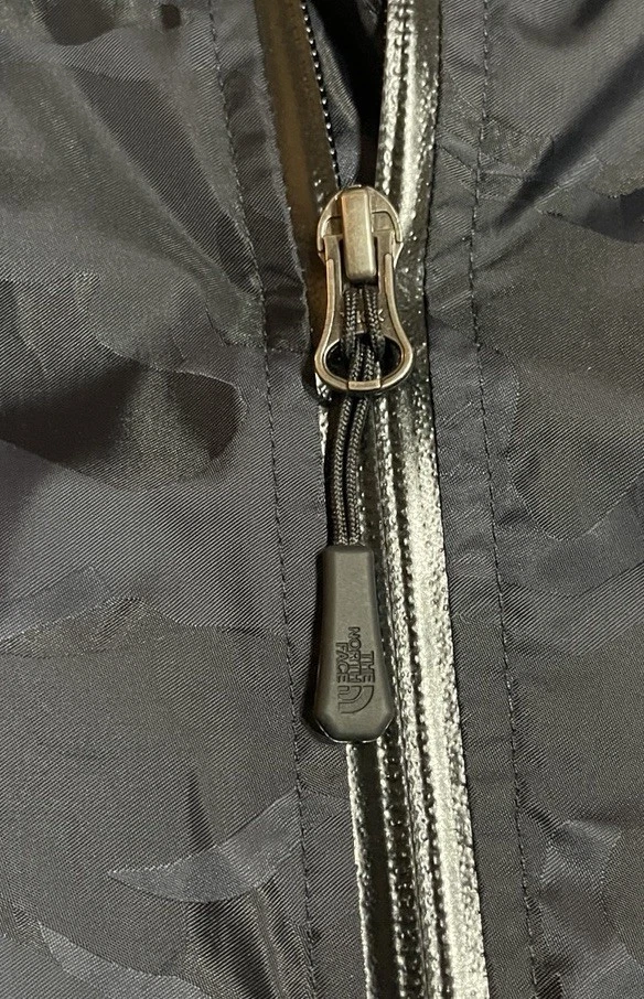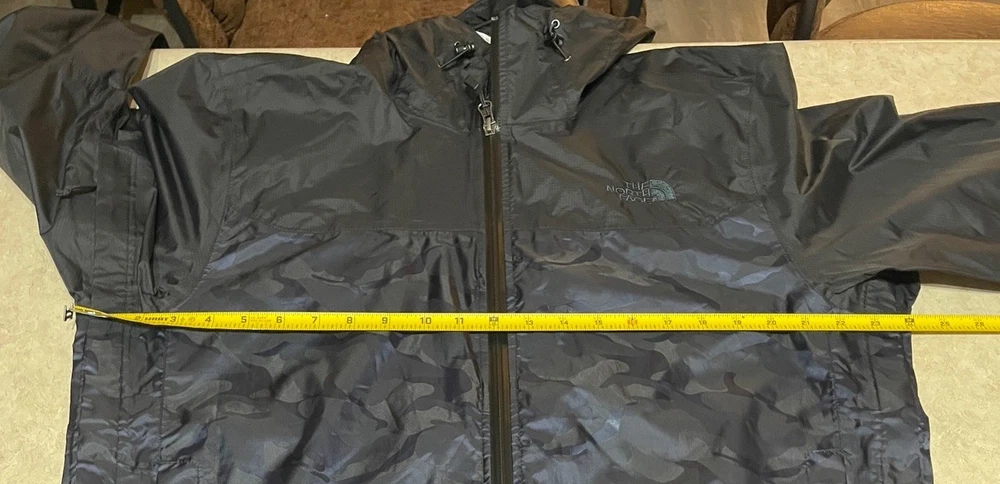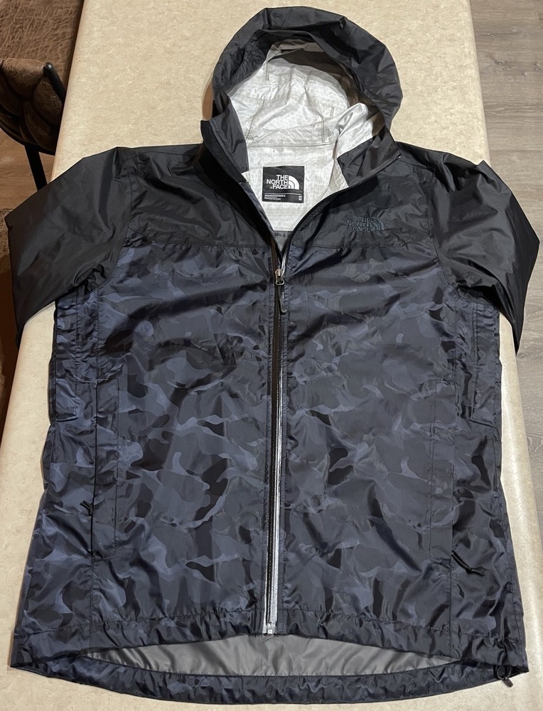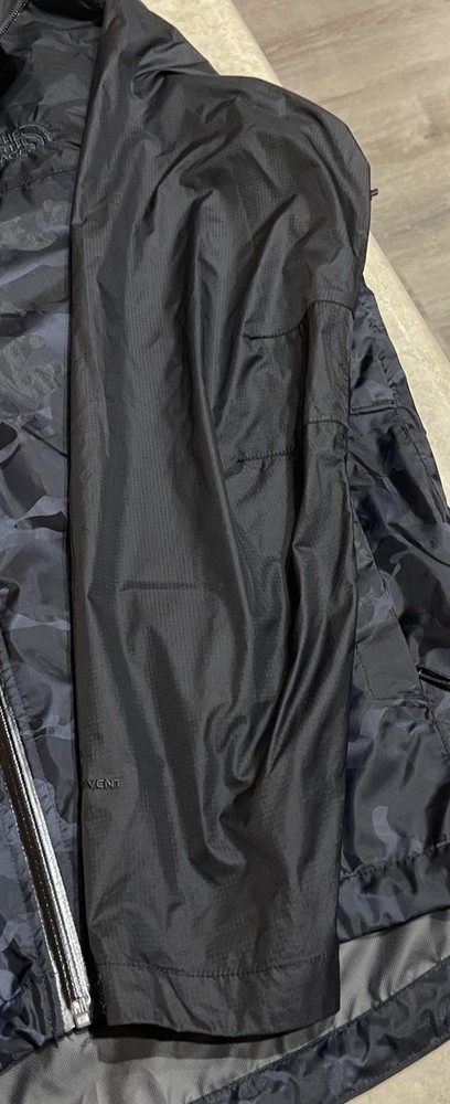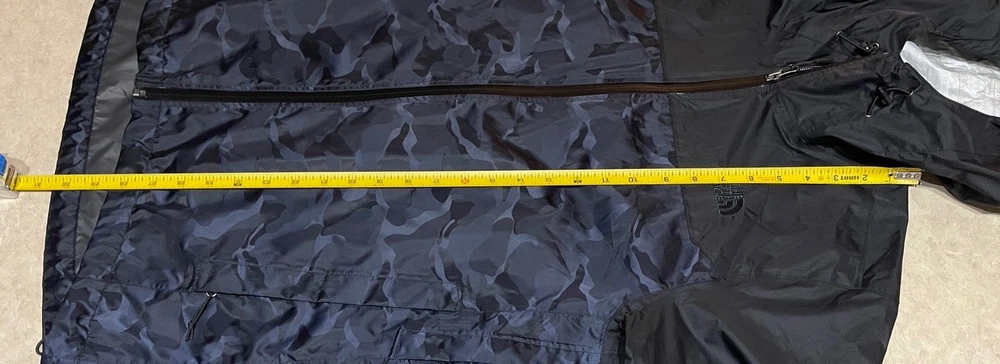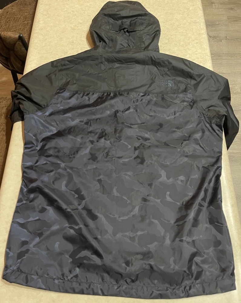 The North Face Severus Waterproof Rain Jacket in Black Camo is a versatile and stylish outerwear option for men. Made from durable polyester with a softshell fabric type, this jacket features a zip closure and a hooded collar for added protection against the elements. The black camouflage pattern adds a fashionable touch, while the athletic fit and waterproof feature make it suitable for various outdoor activities such as hiking, riding, and walking. This mid-length rain coat from The North Face is perfect for travel, casual wear, work, or business occasions. This jacket is in good preowned condition with light signs of wear, please see ALL photos for a better idea on condition, any measurements, or details to the jacket.