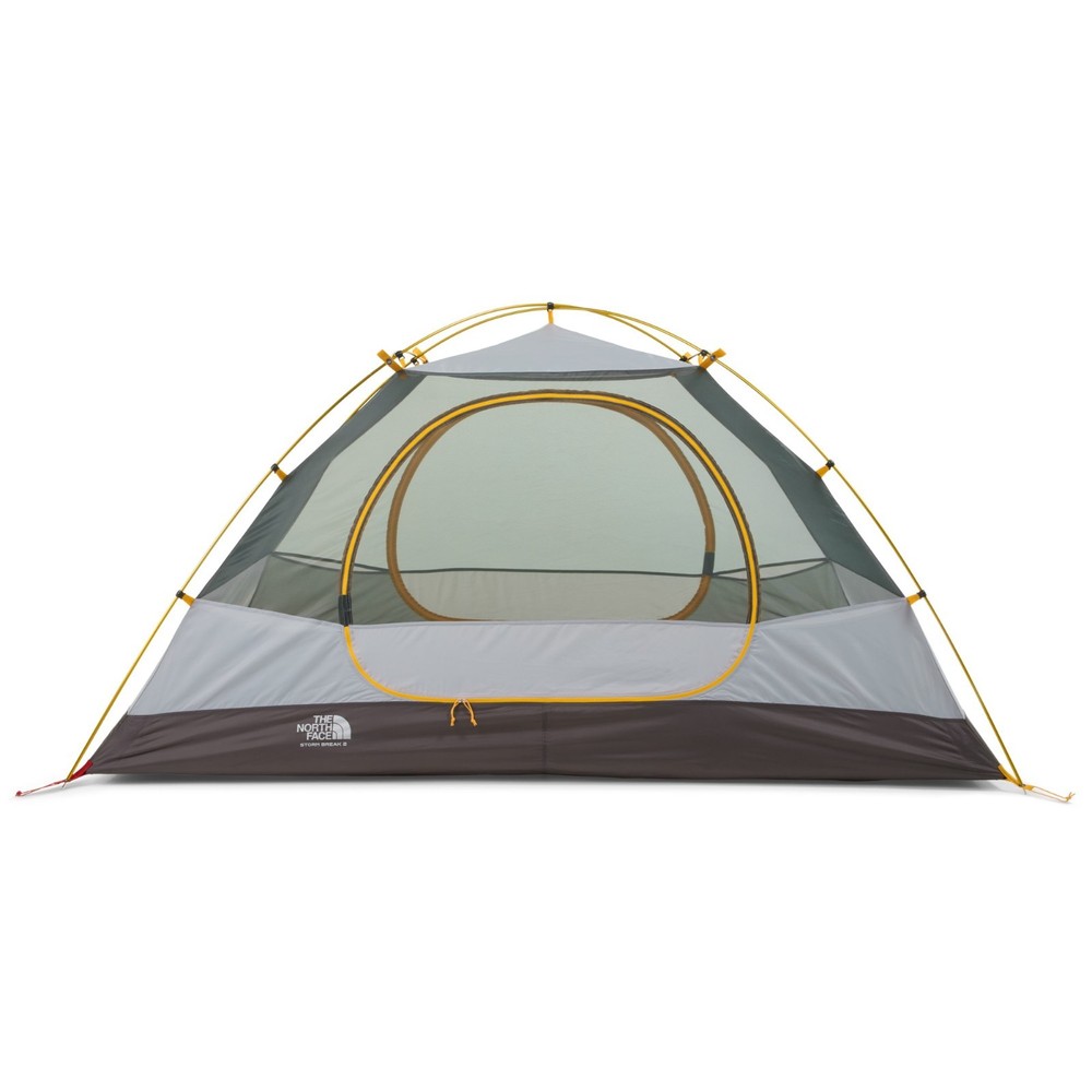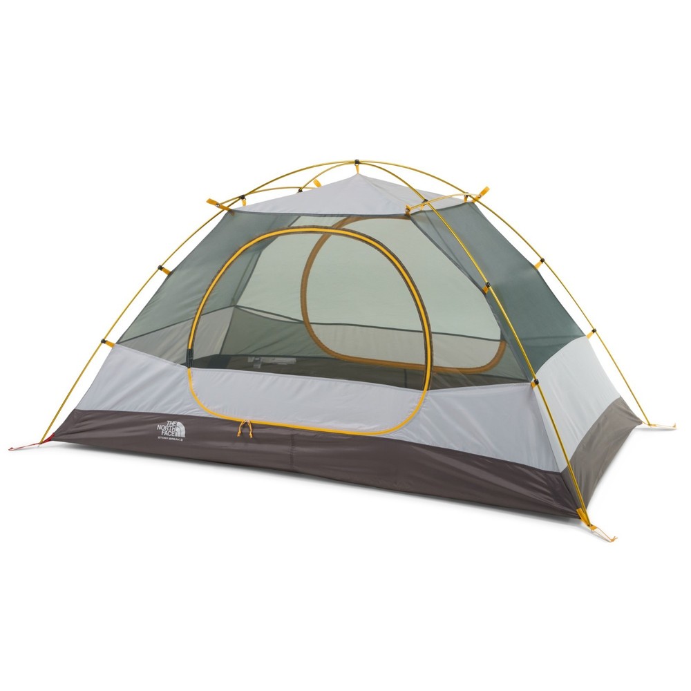 The North Face Stormbreak 2 Tent, Color: Golden Oak/Pavement Features 2 doors and 2 twin-zip, multiconfiguration vestibules You don't have to roll up the doors because you can easily stuff them into the adjacent mesh pockets High-low ventilation for optimal airflow Abundant headroom Fully seam-taped canopy and floor Easy-pitch design Made without flame-retardant coating Footprint (NF0A52V6) not included Shipping Notice: We ship to U.S. residential addresses only. Shipping is not available to freight forwarders, warehouses, commercial transit locations, or PO boxes. Orders placed with non-residential addresses will be held until a valid residential address is provided.