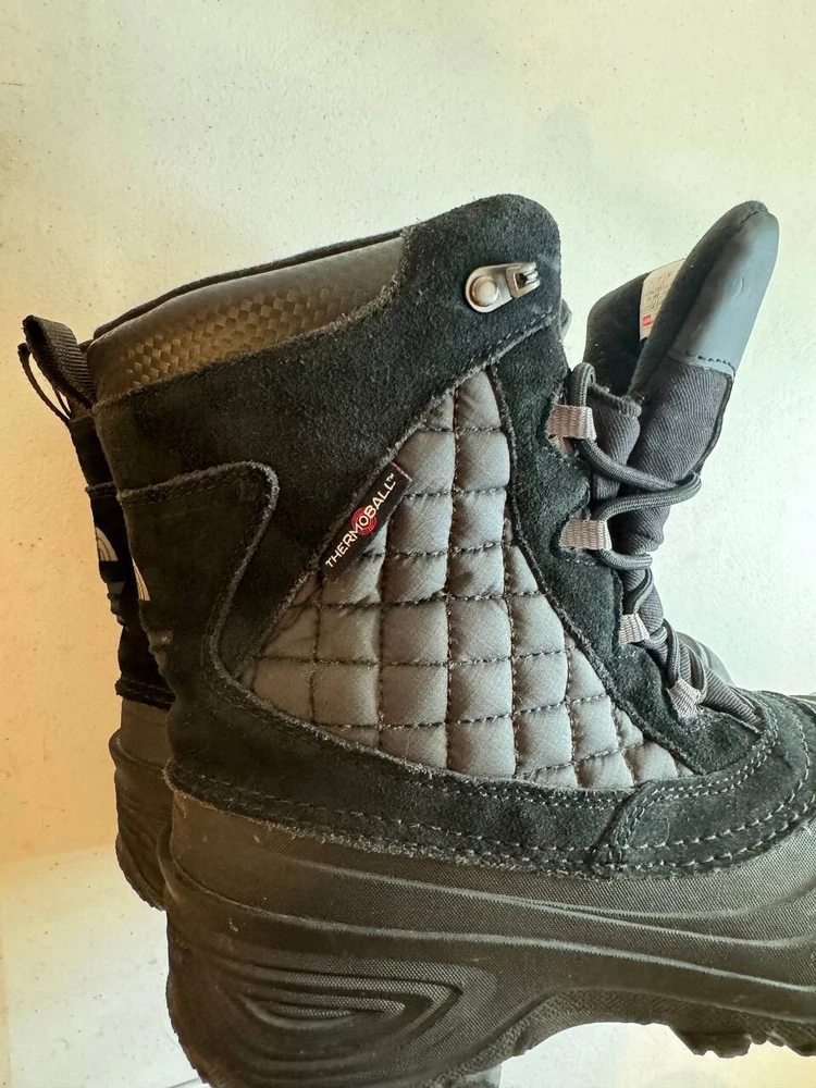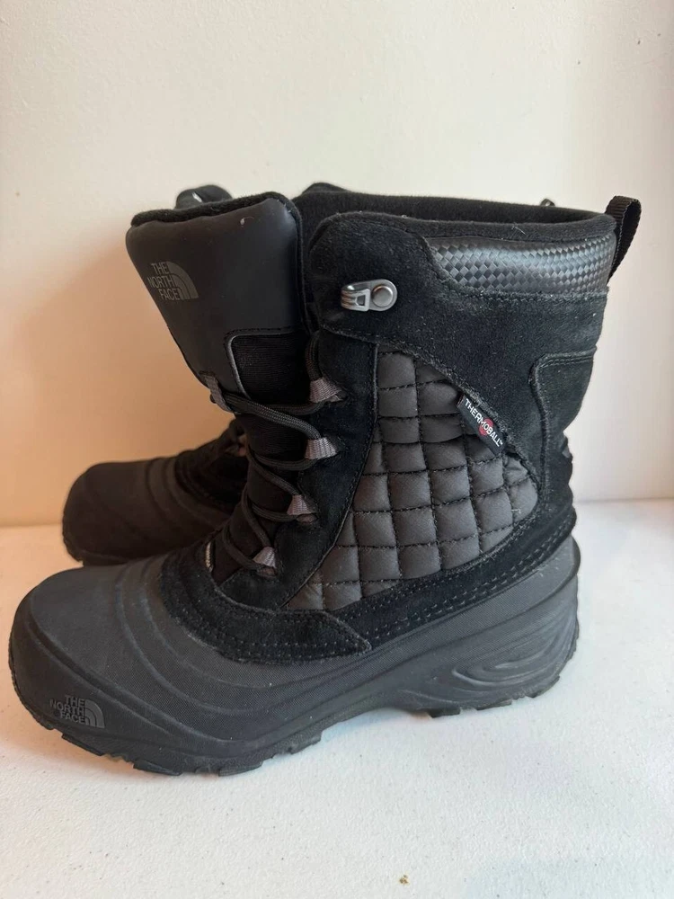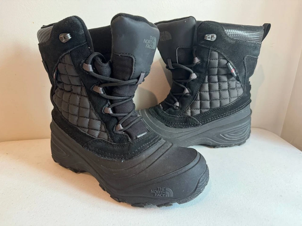 THE NORTH FACE THERMOBALL UTILITY MID WATERPROOF INSULATED BOOTS COLOR BLACK SIZE 6 Like New, worn twice, in excellent condition Upper: Waterproof, BLC-compliant suede and nubuck Water-resistant, baffled, 100% Recycled P.E.T. ripstop detail Waterproof construction Prima Loft Thermo Ball synthetic insulation Product will ship with a tonal, secondary lace option Sole Unit: Injection-molded, waterproof TPR shell Durable TNF Winter Grip rubber outsole Ice Pick temperature-sensitive rubber lugs for increased traction
