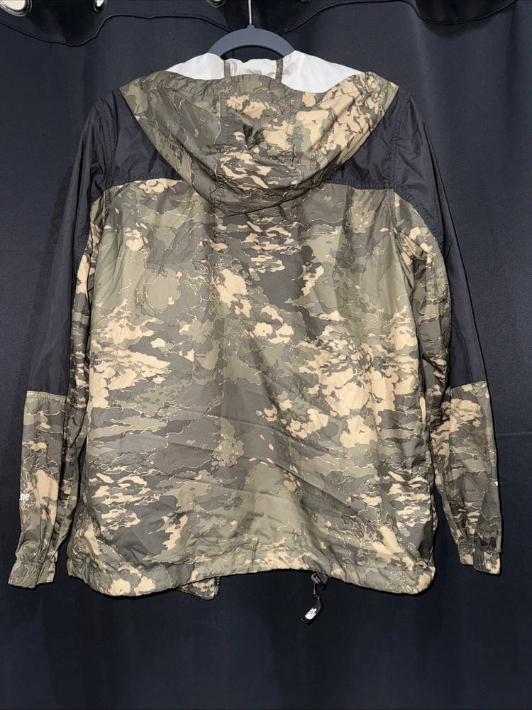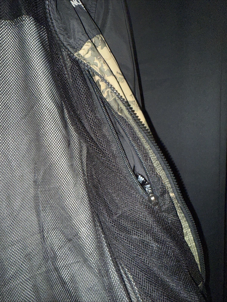 This jacket comes as you see it, It shows as good condition with no rips or tears. It is a camo and black accent light nylon material. Please look at photos and ask any questions prior to purchase as all sales are final. There is no returns accepted.