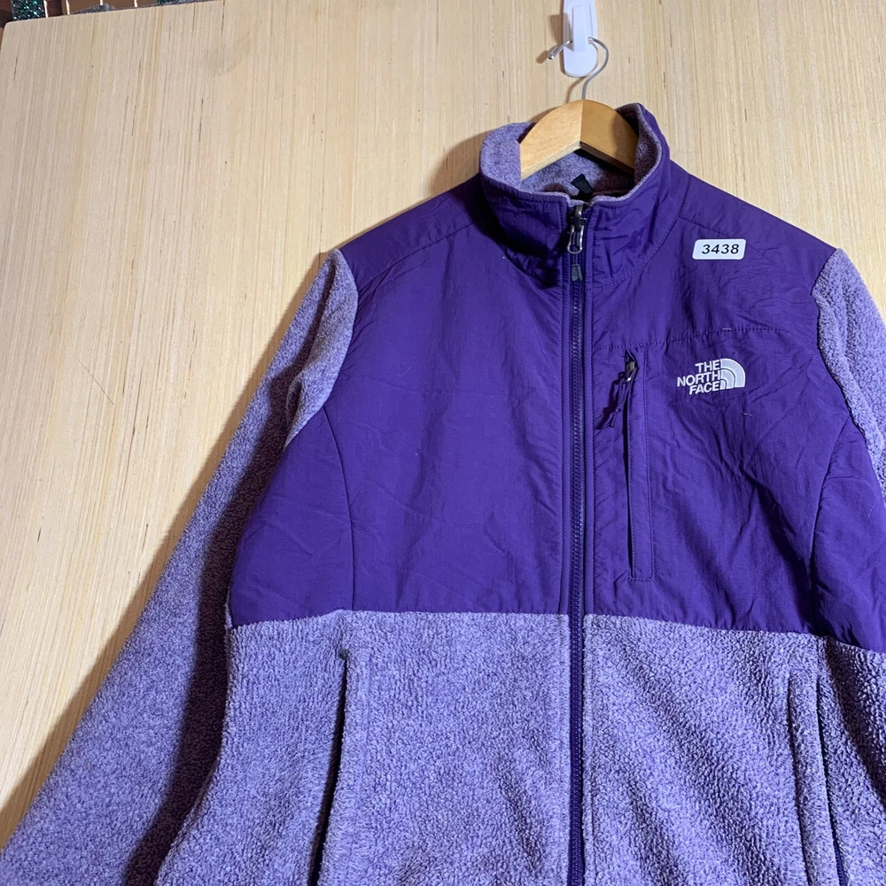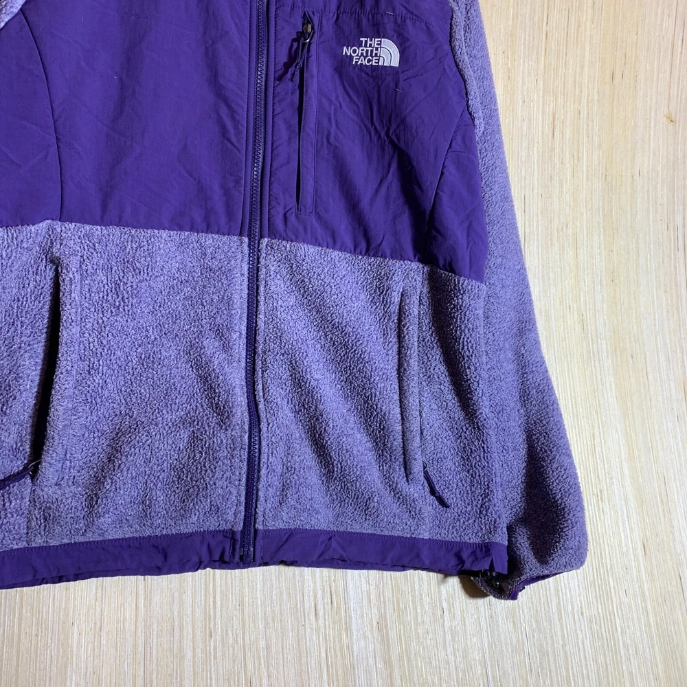 This purple sweater from The North Face is perfect for any outdoor adventure. With a tight-knit cotton fleece fabric, it's both lightweight and warm, making it ideal for all seasons. The full zip style and embroidered logo add a touch of hipster and nature-inspired flair, while the long sleeves and crew neck provide practical warmth. The sweater also features a vintage Denali design, making it a classic and funny addition to any wardrobe. Whether you're a hippie, a motorcycle rider, or a fan of 90s hip hop, this sweater is sure to fit your style.