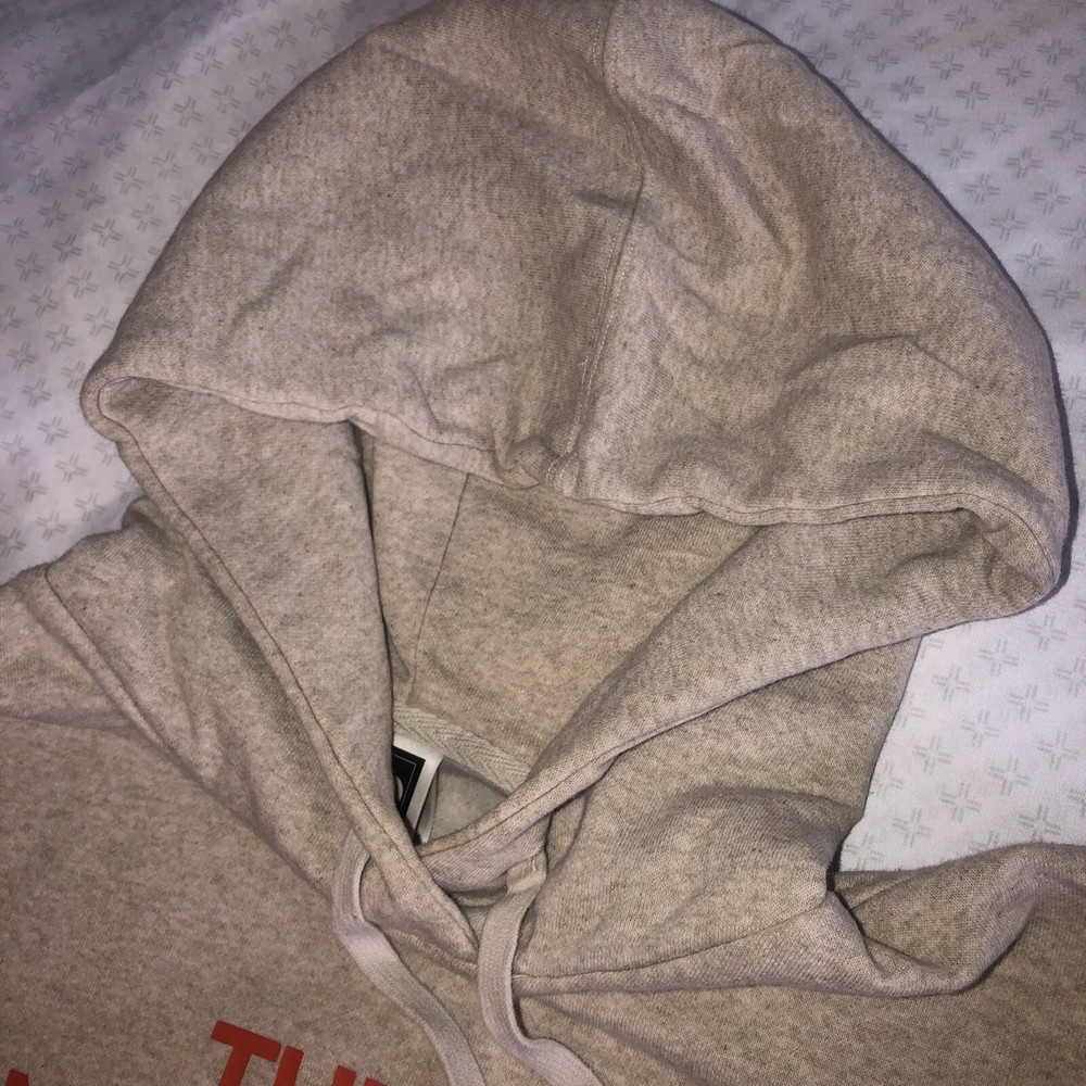 Elevate your activewear with The North Face Women's Hoodie in a versatile beige color, complemented by an orange logo accent that adds a touch of style. This pullover sweatshirt is tailored for a comfortable athletic fit, making it ideal for walking, hiking, or running and jogging adventures. Crafted from a cozy cotton-polyester blend, with a polyester cotton blend lining, it's designed to keep you warm in the winter and cool in the summer, with a hooded feature for all-season wear. Functionality meets fashion with this hoodie's long sleeves, thumb holes for added warmth, and convenient pockets for your essentials. The solid beige hue makes it a classic addition to your wardrobe, seamlessly blending with any outfit or occasion. Machine washable for easy care, this hoodie promises durability and comfort whether you're hitting the trails or the city streets.