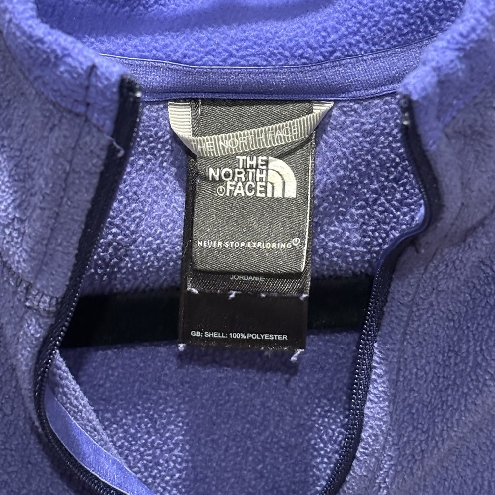 Soft blue 1/4 zip fleece pullover by The North Face. Size M. Good condition. No rips, stains, or holes