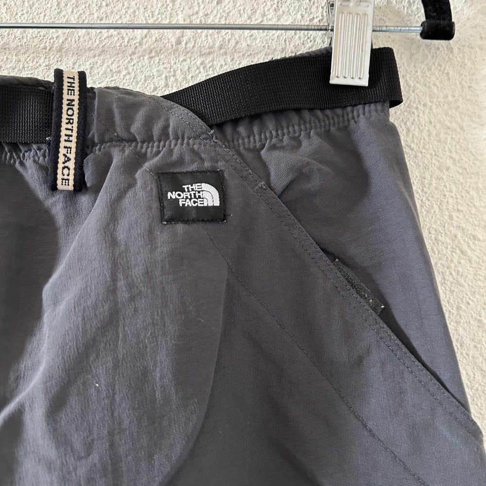 The North Face Women’s Nylon Active Shorts Medium Gray Outdoors in good condition/ Not stretchy/ comes with belt / I believe these are the 2 in 1 zip off pant to shirts but they are only shorts 15” across waist 10” rise 6.5” inseam Approximate measurements All final sale #92 Outdoors snow active Summer