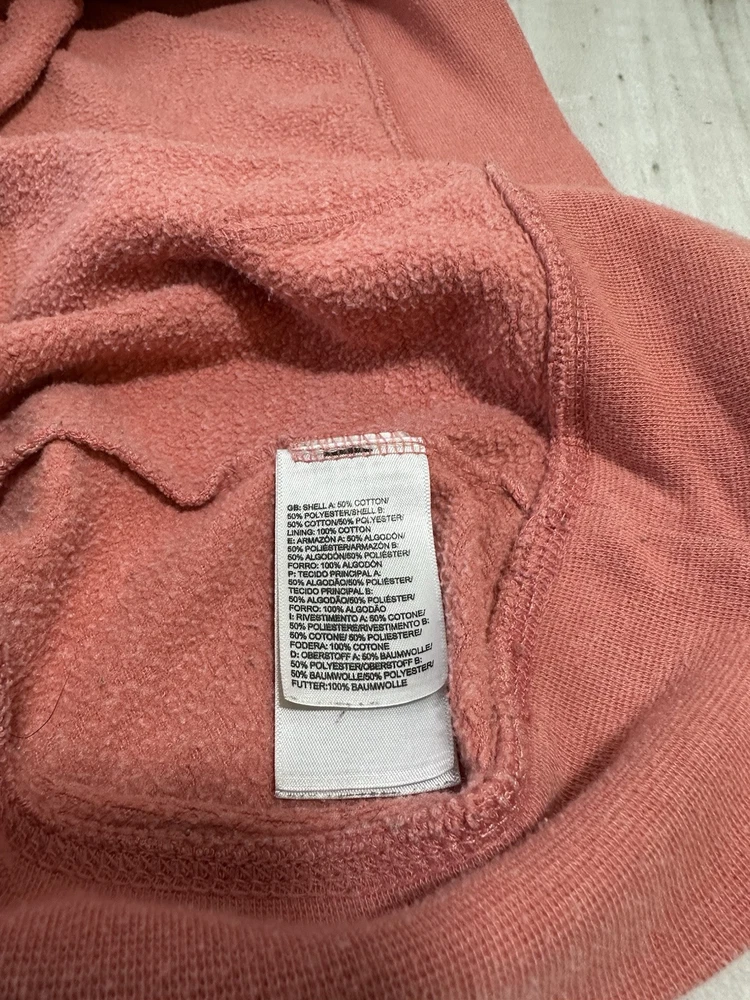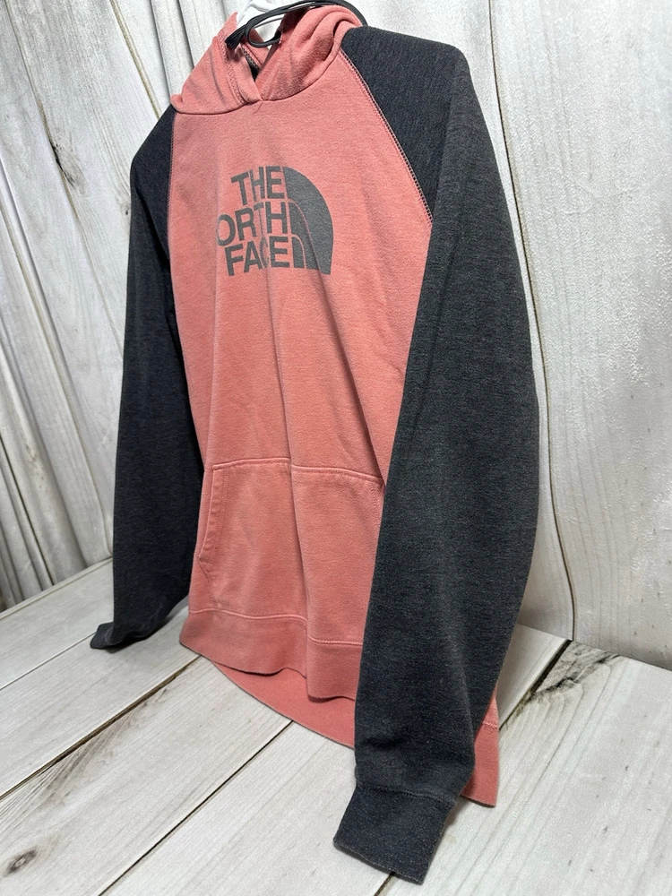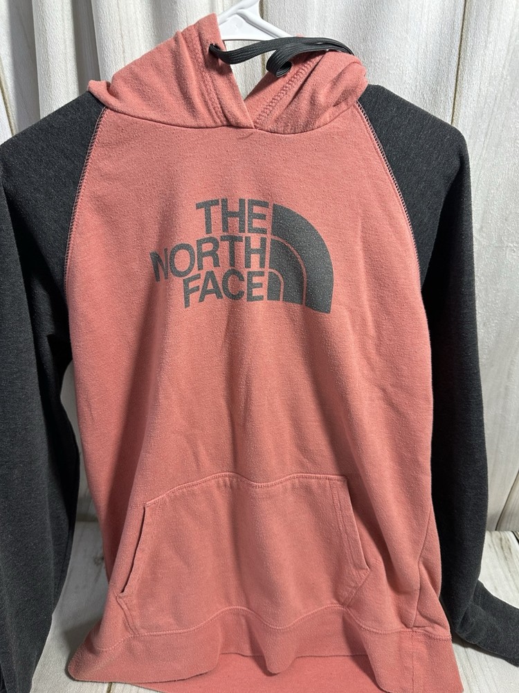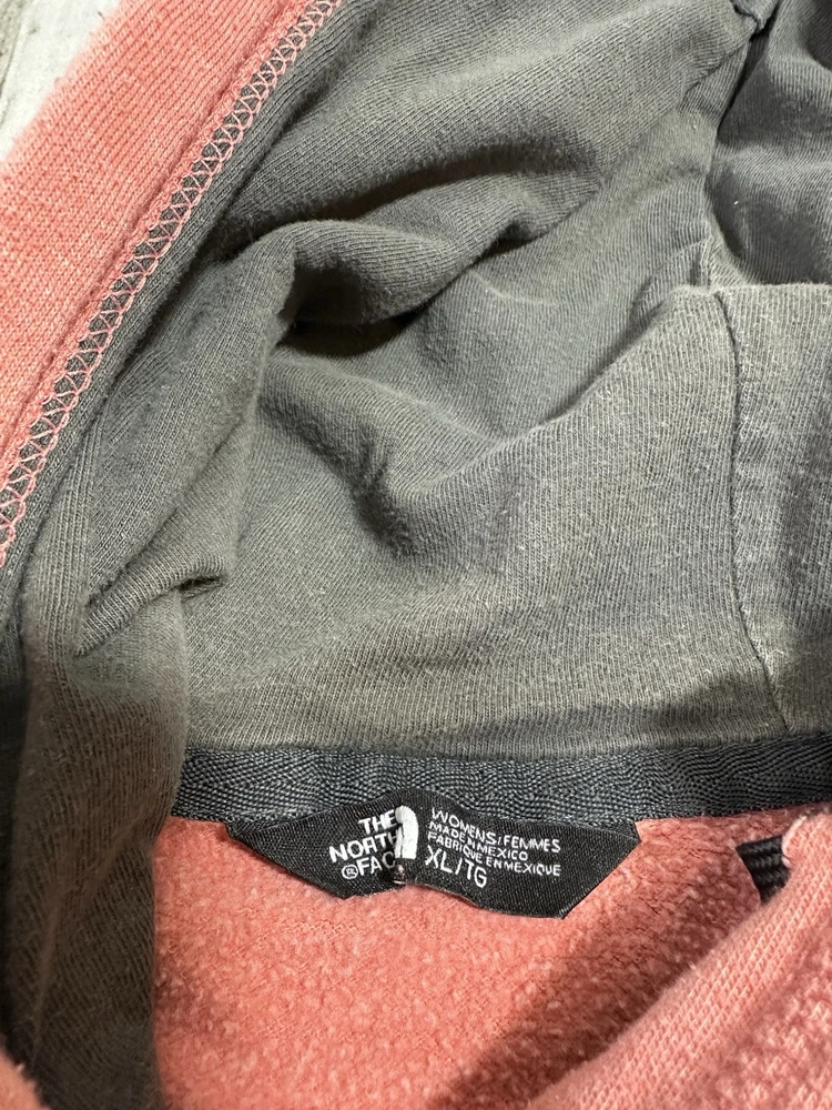 Embrace the outdoors or casual comfort with this stylish North Face women's hoodie in size XL. The pullover features a vibrant blend of coral and gray, complemented by the iconic Half Dome logo that adds a touch of adventure to your attire. Crafted from a cozy blend of cotton, polyester, and more, this hoodie promises both warmth and durability across all seasons. Designed with practicality in mind, it boasts convenient pockets and is machine washable for easy care. The long sleeves and solid knit fabric make it a versatile piece for activewear, travel, or everyday casual looks. Whether you're hitting the trails or the streets, this hoodie keeps you looking great and feeling even better.