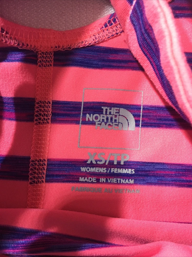 The North Face Womens XS Racerback Tank Top Sleeveless Shirt Stripes Pink Blue . UAM1
