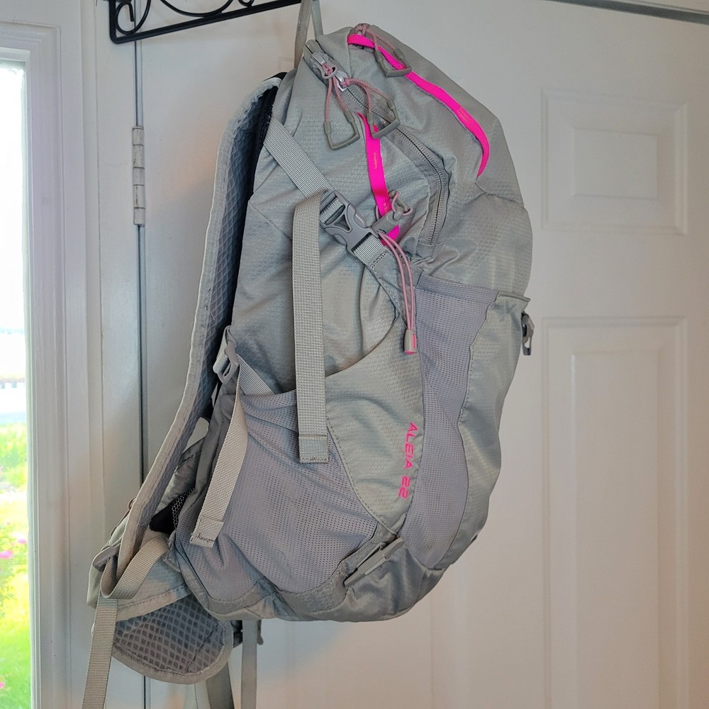 The Northface Aleia 22 backpack in hot pink and grey is a versatile and stylish option for hiking and outdoor adventures. With multiple pockets for organization, padded straps for comfort, and a durable nylon construction, this large capacity backpack is perfect for women on-the-go. The vibrant color combo, brand quality, and practical features make it a standout choice for those who enjoy backpacking and other outdoor activities.
