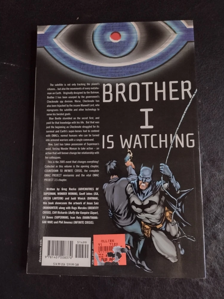 The OMAC Project TPB is a collection of comics published by DC Comics in January 2006. The book features a diverse cast of superheroes, including Batman, Green Lantern, and Wonder Woman, as they battle various villains and threats. The story follows the adventures of OMAC, a powerful superhero who is tasked with protecting the world from evil. The book has a modern age era and belongs to the US Comics tradition. The cover artist is José Ladrönn, and the book is written in English.