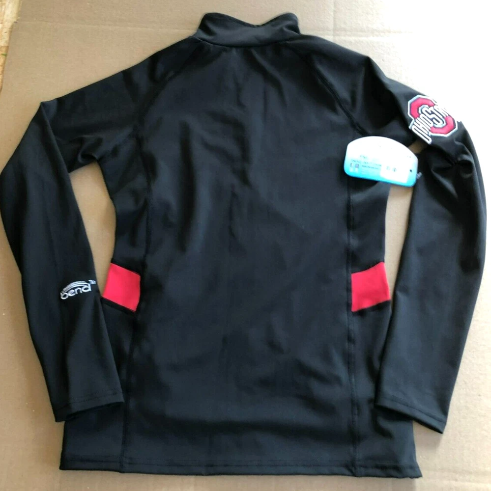 Our Offically Licensed Ohio State Lightweight Jacket is made with our signature fabric. This lightweight material is perfect for layering over your favorite tank, and comfortable enough for all day wear. Slightly Fitted through body Luxe Performance Material Moisture Wicking Material Flat Lock seams help prevent chafing Embroidered Logos 90% Polyester/10% Spandex New With Tags