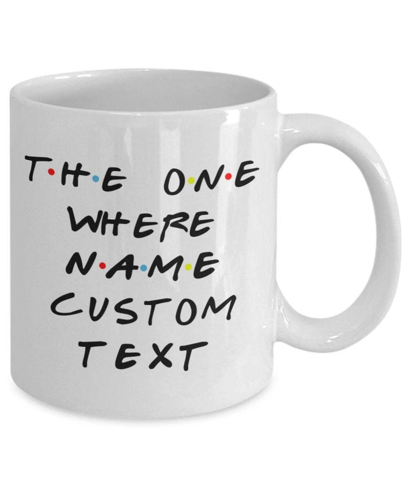 The One Where Custom Text Friends Mug Personalized Friends Mug Custom Quote Product Details.. This high quality 11oz. ceramic white mug has a premium hard coat that provides crisp and vibrant color reproduction sure to last for years. Perfect for all hot & cold beverages. The highest quality printing possible is used. It will never fade no matter how many times you wash it. Material: 100% Ceramic. Print both sides. Dishwasher and Microwave Safe. High Gloss + Premium White Finish. Printed in the U.S.A. Personalized & Custom. We support personalized and custom mug to add custom, when placing an order, you can add notes to the "order note" in shipping address section. Also you can contact us directly via message. Shipping Info. Ready to ship in 1 to 2 business days, All products are made-to-order and proudly printed in the United States. Shipped by USPS and DHL, You will receive your order in 5-7 days. Replace & Refund. All products are defective during shipping broken, chipped will be replaced free of charge. You are not satisfied with the product, we will refund 100% money to you. If any other issues arise, please do not hesitate to message, we would be more than happy to assist you.