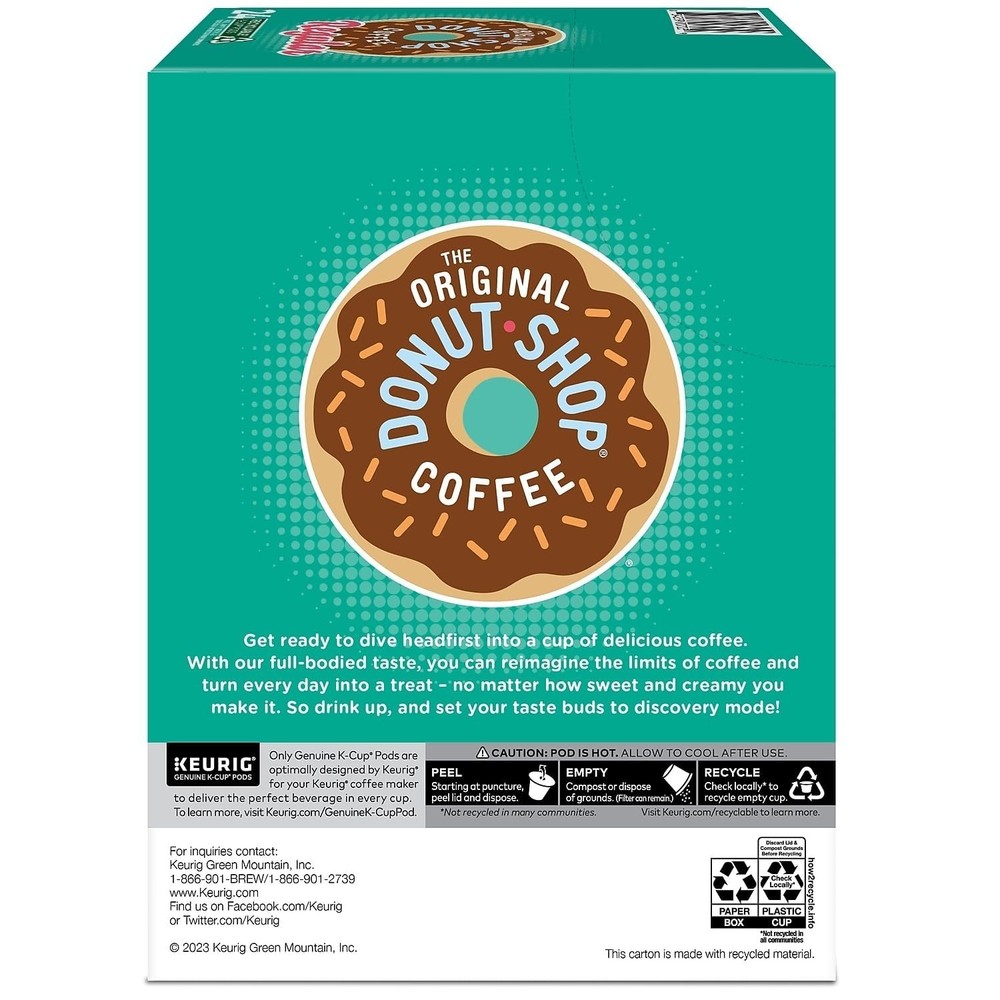 The Original Donut Shop Regular Keurig Single-Serve K-Cup Pods, Medium Roast Coffee, 96 Count. Dive headfirst into a cup of delicious coffee. With our full-bodied taste, you can reimagine the limits of coffee and turn every day into a treat -no matter how sweet and creamy you make it. Drink up and set your taste buds to discovery mode.