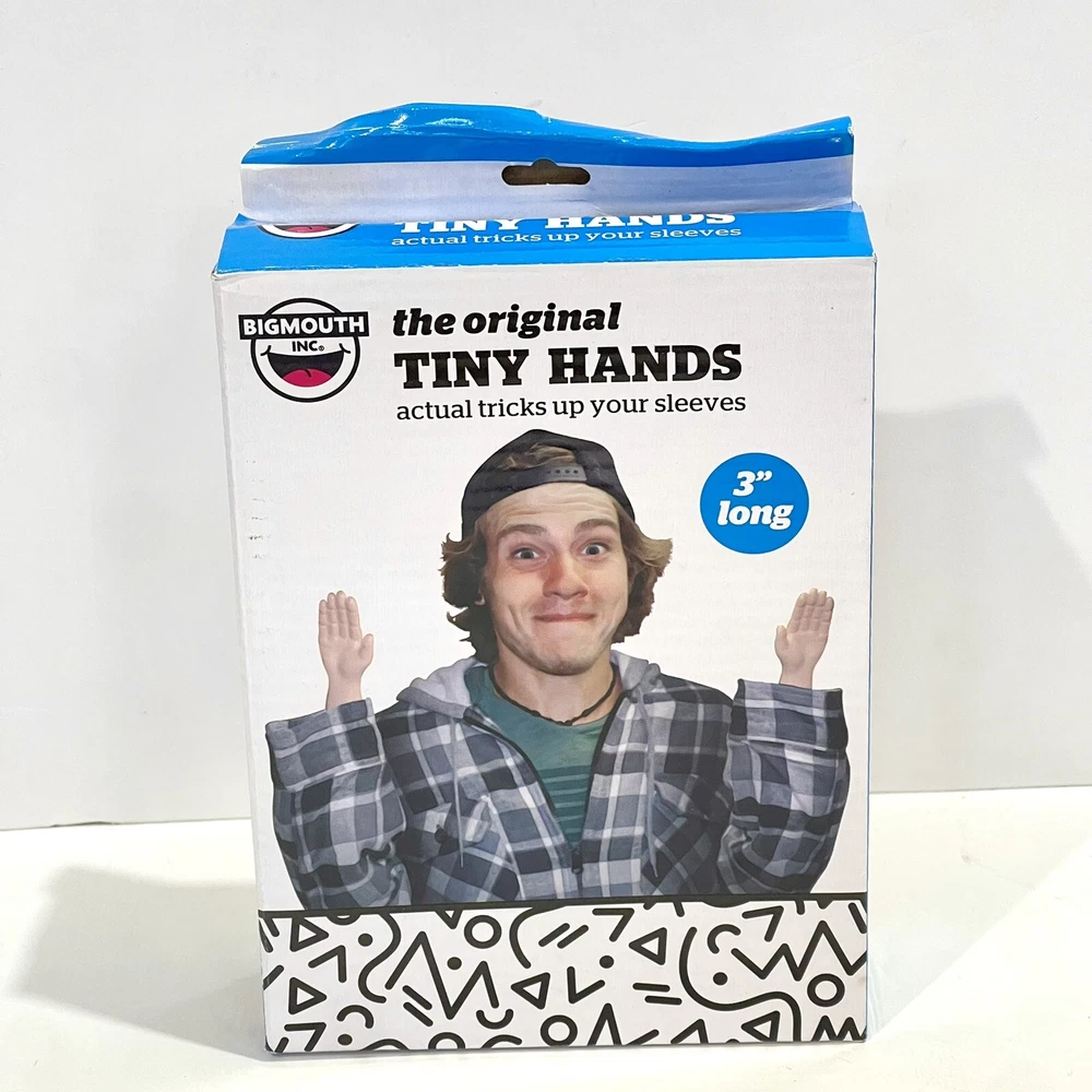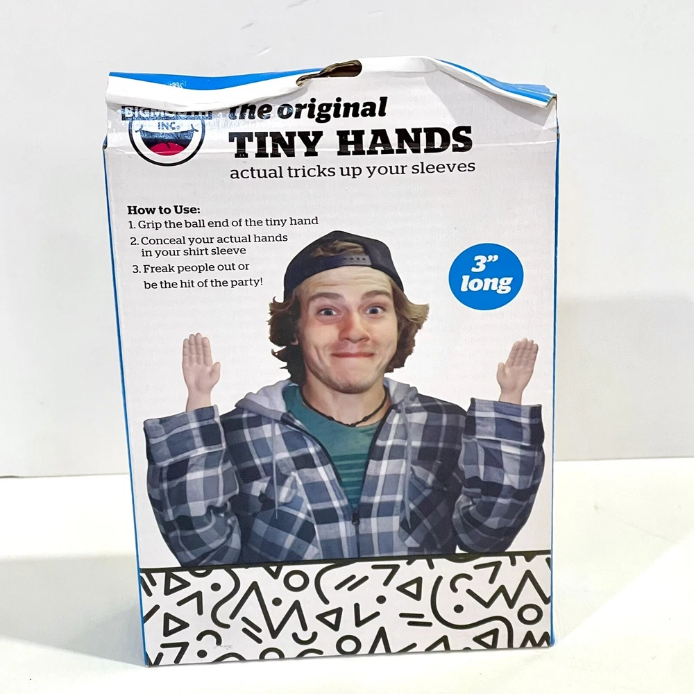 New, Bigmouth Toys The Original Tiny Hands are 3 inches long. 1. Grip the ball end of the tiny hand 2. Conceal your actual hands in your shirt sleeve 3. Freak people out or be the hit of the party!