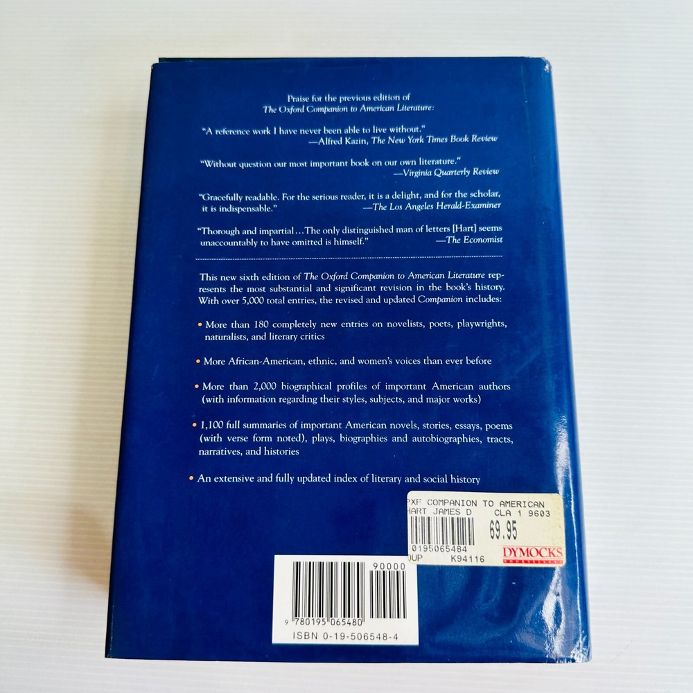The Oxford Companion to American Literature by James D. Hart Hardcover 6th Ed Item posted within two business days of payment clearing via Australia Post. Australian seller - smoke free - pet free - working mum Adding new book listings daily to my store. My books are sent in strong Australia Post, Australian made, water resistant padded mailers that are recyclable through the REDcycle program and can be recycled at any major shopping centre. Pre-owned, some highlighting noted, see photos for condition and read the description.