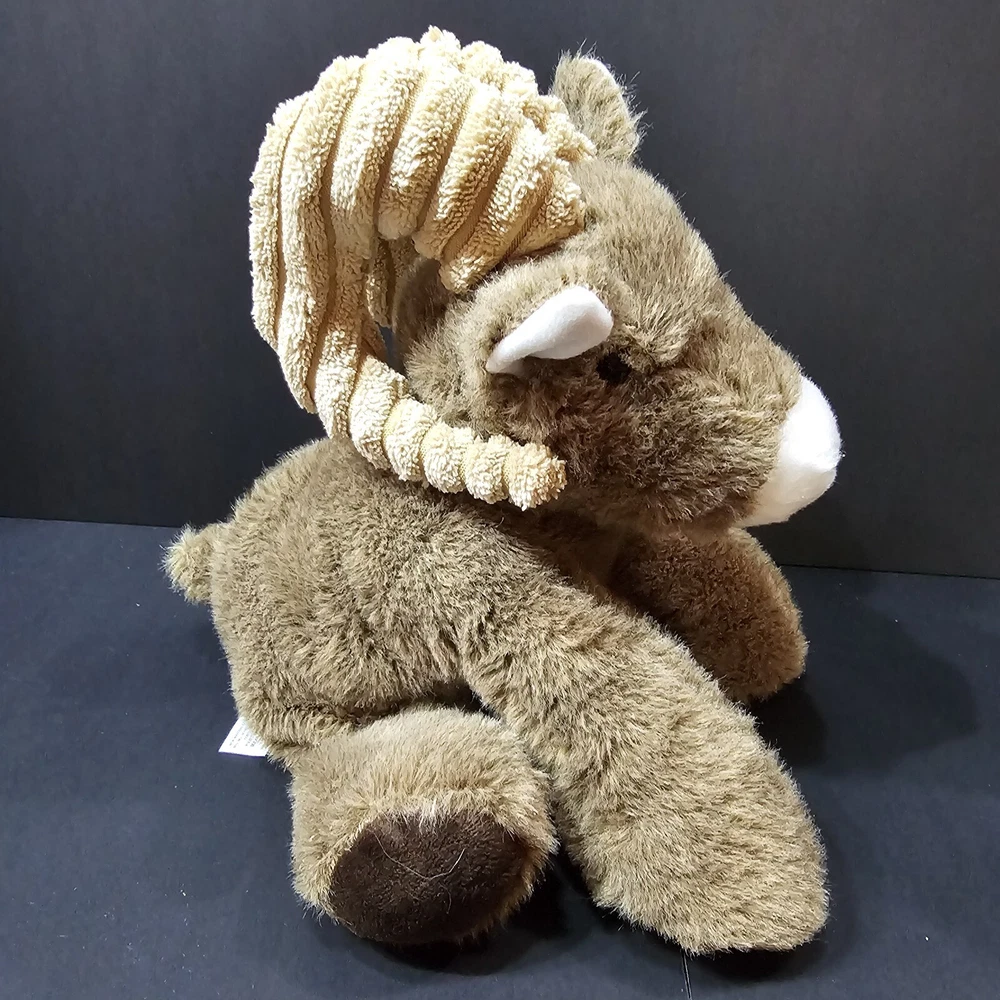 The Petting Zoo Big Horn Sheep Brown Wildlife Floppy Plush Stuffed Animal NWT 8 inches long from nose to tail 9 inches tall from top of horns