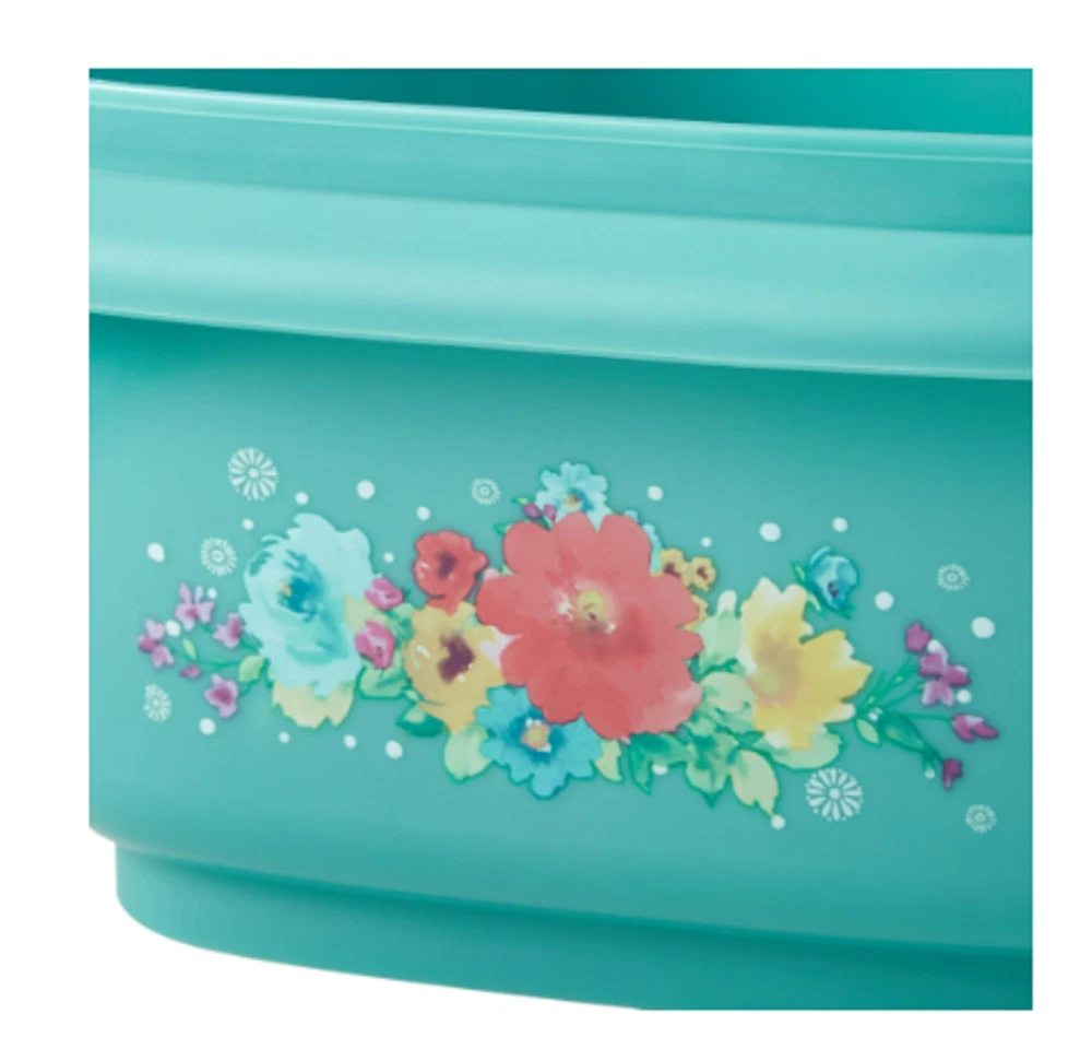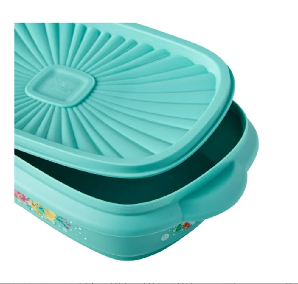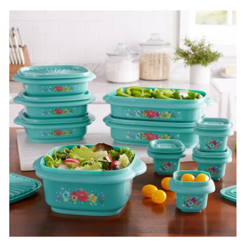 20-Piece Food Storage Set with BPA-Free Plastic Containers and Lids, Breezy Blossom Product details 20-Piece Food Storage Set will become your home kitchen staple for everyday cooking and baking. This convenient food storage pack comes with twenty assorted containers with coordinating lids including four 1/2-cup square containers, three 3-cup square containers, two 4-cup rectangle containers, and one 5-cup square container. These food storage bowls ensure that your leftover foods or prepared meals are kept fresh and safe in the refrigerator or freezer. In addition to providing ideal storage, these containers and their lids are microwave safe, so you can heat your food without switching to another bowl, plate, or other kitchenware for convenience and less waste. The lids are easy to seal- simply press down in the center for a snug, airtight fit that allows for great food storing results. Constructed with BPA-free plastic, these food storers provide long-lasting durability and won't break or get damaged when dropped. Their teal color featuring one of Ree's signature Breezy Blossom floral designs makes them a great stylish addition to your kitchen and perfect to use as serving bowls, both indoors and outdoors, or even to bring along on your picnics. After use, these containers and lids are dishwasher safe for a quick and easy clean up. Meet Ree: Ree Drummond is a NY Times Best Selling Author, TV personality, social media phenom, and the woman behind the popular Pioneer Woman lifestyle blog that started it all. She's also a lover of butter, basset hounds, Ethel Merman, her hunky, cowboy husband Ladd, and their four kids. Her casual country style and delicious recipes have made her a go-to for all things cooking and entertaining. About this item 20 assorted containers with lids - (4) 1/2-cup, (3) 3-cup, (2) 4-cup, (1) 5-cup Great for storing leftovers or meal preps in the fridge or freezer Microwave safe so you can heat food without switching kitchenware Easy to seal lids provide a snug airtight fit onto containers BPA-free plastic construction is durable and won't break or damage when dropped Specification Features Airtight, With Lid Material Polypropylene Food Storage Jar & Container Type Food Storage Containers