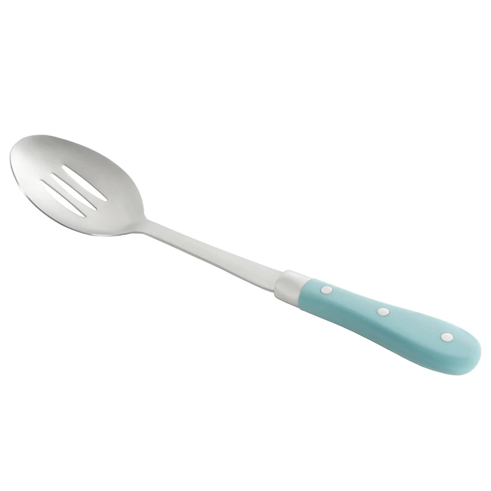 The Pioneer Woman Frontier Collection 15-Piece All in One Tool and Gadget Set, Turquoise Set will outfit your entire kitchen with all the essential staples and accessories to help make cooking a breeze. This set is available in Red, Teal, Linen, Black and Cobalt Blue so you can choose the perfect color to compliment your kitchen's color scheme. This 15 piece set is crafted with durable. The nylon head spatula is the perfect addition to the set. Made of Stainless Steel, Nylon and Riveted ABS Handles Dishwasher Safe All Purpose Spatula Balloon Whisk Basting Spoon Flat Whisk Cheese Grater Ice Cream Scoop Jumbo Turner Ladle Potato Masher Meat Tenderizer 14" Nylon Turner Pizza Cutter Slotted Spoon 13" Slotted Spatula Icing Spreader Brand The Pioneer Woman Assembled Product Weight 6.61 lb Manufacturer Part Number 122709.15R Manufacturer Gibson Overseas Inc. Color Blue Assembled Product Dimensions (L x W x H) 39.00 x 23.00 x 10.50 Inches