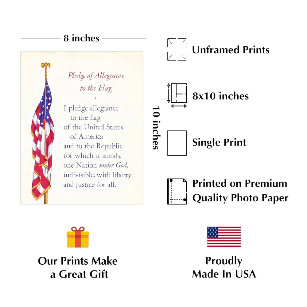 Store New Arrivals Add to Favorite View Feedback Contact The Pledge of Allegiance - Patriotic Wall Art Poster, This Motivational Wall Decor Is an Ideal Inspirational Art for Home Decor, Bedroom Decor, Man Cave Room Decor, or 4Th of July, Unframed - 8X10 Description Width 8 inches Surface Treatment Method Digital/ Flat Material Fuji PhotoGraphic Paper Production Method All our prints are digitally printed on Luster finish Fuji Crystal Archive Photo Paper for highest quality, clarity and color fidelity to provide a lifetime of enjoyment. Height 10 inches Color The Pledge of Allegiance - 8x10" Size Medium Printing Type Flat Number Of Sets 1 Finish Type Semi-Gloss Package Dimensions 11.3 x 8.9 x 0.24 inches; 2.86 ounces Number Of Pieces 1 Patriotic American Print - This patriotic poster is designed to inspire, uplift, and showcases a powerful message of patriotism, honor, and determination, and is a great accent print for office decor, living room decor aesthetic, or general room decor aesthetic. Excellent Inspirational Gift - This patriotic wall decor poster print makes a thoughtful and meaningful gift for individuals who have a strong connection to their country or demonstrate exceptional patriotism. This Print Comes Unframed - This work of art would be a great addition to your room accessories or wall decor posteraesthetic and was printed on premium-quality Luster finished Fuji Crystal Archive Photo Paper, this is unframed and frames are not included in this purchase. Product - At American Luxury Gifts, we hold ourselves to a high standard when it comes to the quality of our products. We are committed to ensuring your satisfaction and a high quality patriotic wall Poster Prints which is our utmost priority! Proudly Made In the USA - This patriotic artwork is proudly American made with meticulous attention to detail. It undergoes rigorous quality control measures, ensuring superior craftsmanship and exceptional quality. Product Description ABOUT US We offer the best prices around on high quality products. Our E-store includes media such as books, movies, music and games while offering electronics, toys, sporting apparel, clothing, tools, general home, garden items and more. SHIPPING We are always working hard to ensure your package arrives as soon as possible. Please understand that some factors like weather, high postal traffic, and the performance of shipping companies are outside of our control. We offer free shipping to the lower 48 states and ship within 2 business days of payment, usually sooner. We do not accept P.O. Boxes. Please provide a physical address. For shipping outside of the continental USA, we only use eBay's Global Shipping Program.The item is shipped to KY and then sent to the rest of the world. International customers are responsible for all duties and taxes. Continue to check out in order to calculate costs for shipping the item to your country. Messages regarding eBay's Global Shipping Program MUST be directed at eBay EXCLUSIVELY. RETURNS We offer a 30-Day Return Policy on items which you are not completely satisfied with. You have the option for a full-refund or an exchange of the item. No returns are available on items shipped outside of the USA. PAYMENT We accept PayPal. CONTACT US This page content is yet to come Please ad us to your favorite seller and visit again later Thank You CUSTOMER SATISFACTION We try our very best to make sure every customer is completely satisfied. If there's a problem, message us! We're happy to help. WE ACCEPT Copyright © 2021 AutoDS. | All Rights Reserved