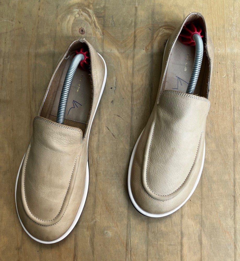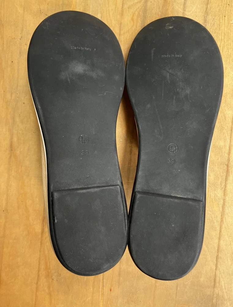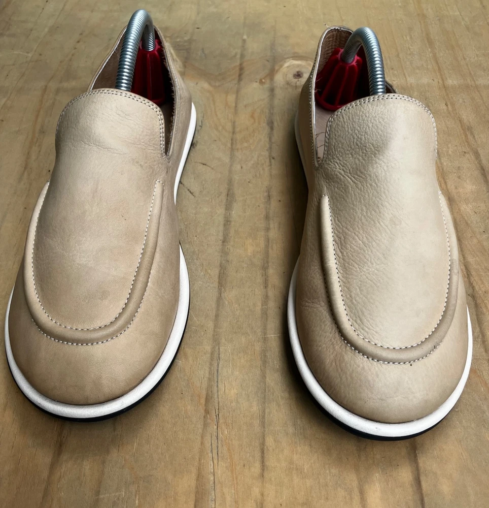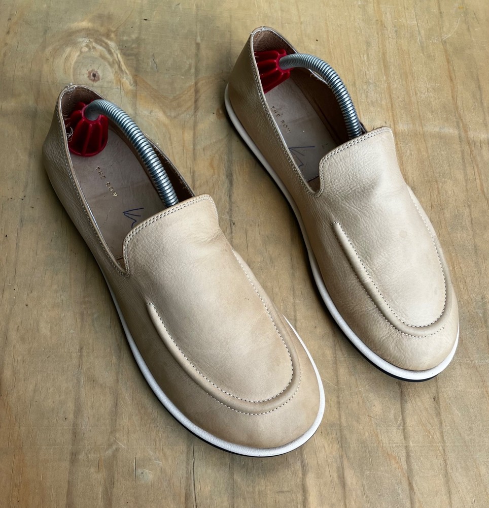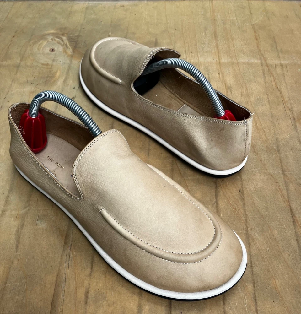 These The ROW Canal Leather Beige Loafers in Women's Size 39 EU/9 US are a stylish and comfortable choice for casual occasions. With a round toe shape, slip-on closure, and lightweight design, they are perfect for the summer and spring seasons. Made with high-quality leather and a rubber outsole, these loafers feature a logo accent and a solid beige color. The angel-themed design adds a touch of personality, making them a versatile and fashionable option for any woman's wardrobe.
