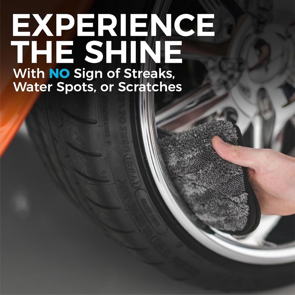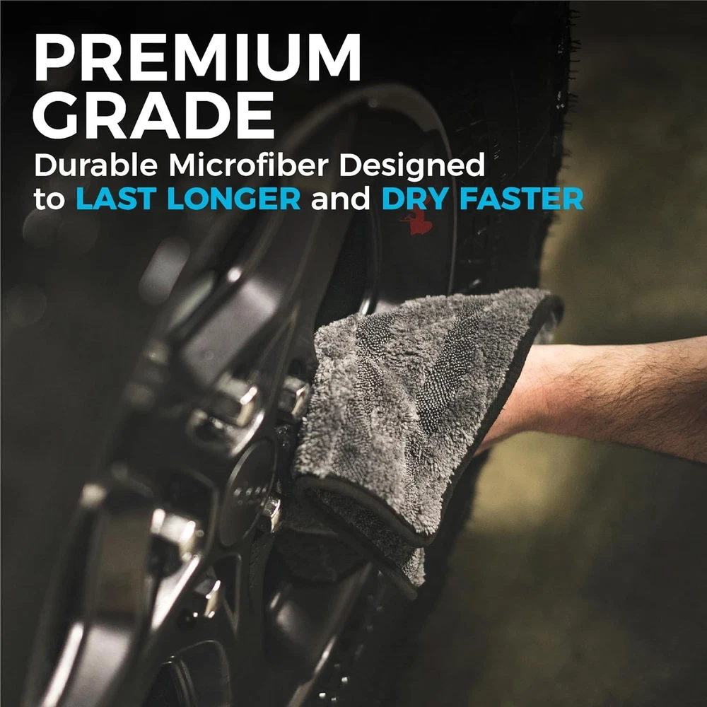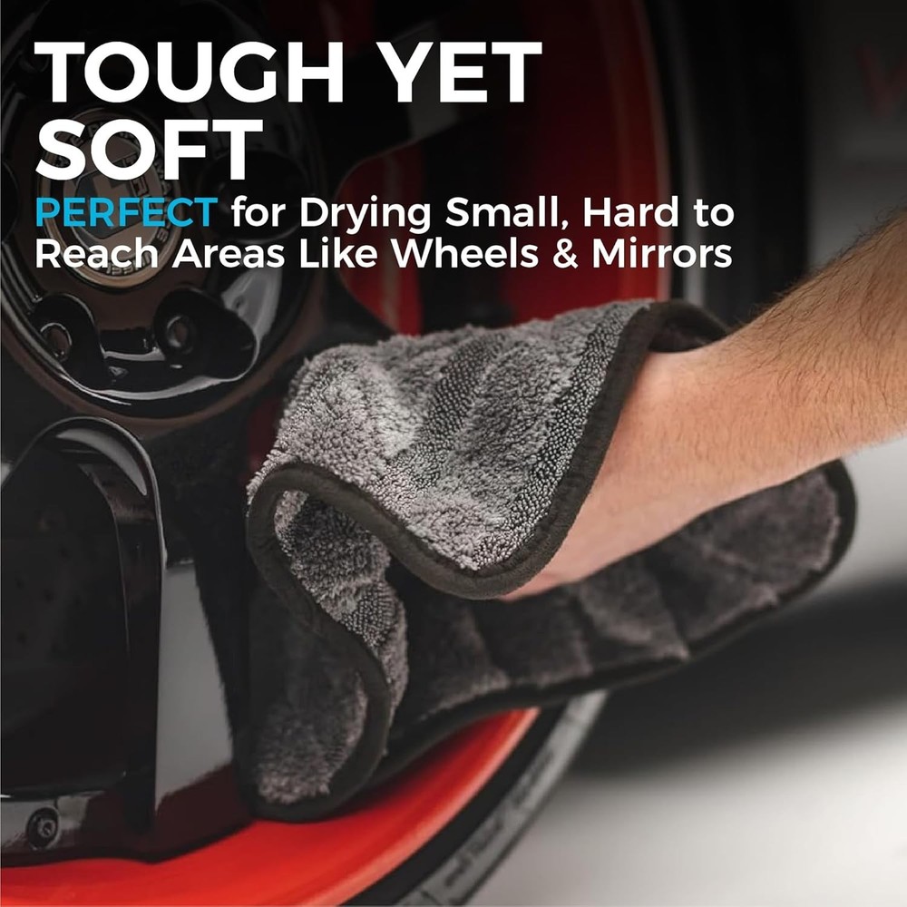 Car Drying Towel - 70/30 Korean Microfiber, Dries Faster Without Scratching, 900gsm, 12x12 inches, Ice Grey/Grey, 3 Pack PREMIUM PATENTED HYBRID TWIST LOOP for drying your vehicle quickly. Safely draws moisture away from the surface and into the patented twist/plush fiber design of the towel. One of the most absorbent towels by weight that we have ever tested (10x+ other towels). These make the perfect microfiber towels for cars. FASTER, SAFER DRYING - 70/30 blend 900gsm professional microfiber drying towel with over 500,000 fibers per square inch and our trademarked "ButterSoft" suede microfiber border that is absorbent and won’t scratch paint, glass, or plastic. Our microfiber towel is no joke! FINEST QUALITY - 100% South Korean super plush AA-grade split microfiber. Long considered the highest quality available, it can withstand hundreds of washes, getting softer each time making it the perfect car drying towel. MULTIPLE SIZES FOR ANY JOB - Use the small rag to dry small nooks and crannies while the largest towel can dry large surface panels and windows with ease. Gauntlet car drying towel, The Rag Company microfiber towel, 70/30 Korean microfiber drying towel, premium car drying cloth, plush car wash towel, auto detailing drying towel, high absorbency car towel, car wash drying cloth, microfiber car care towel.