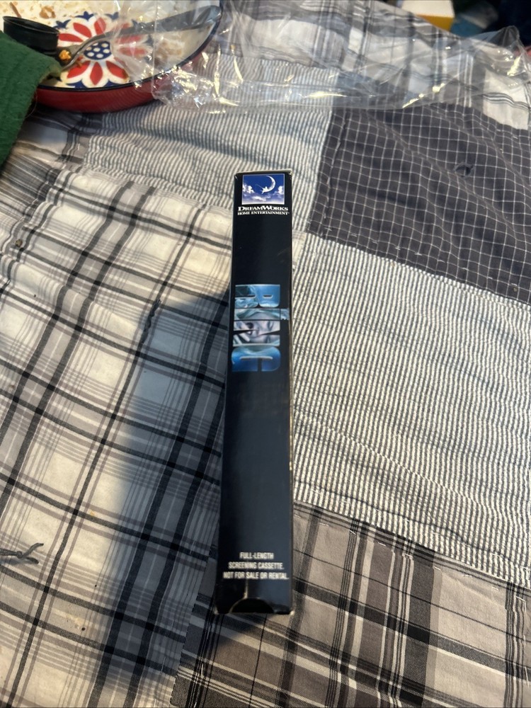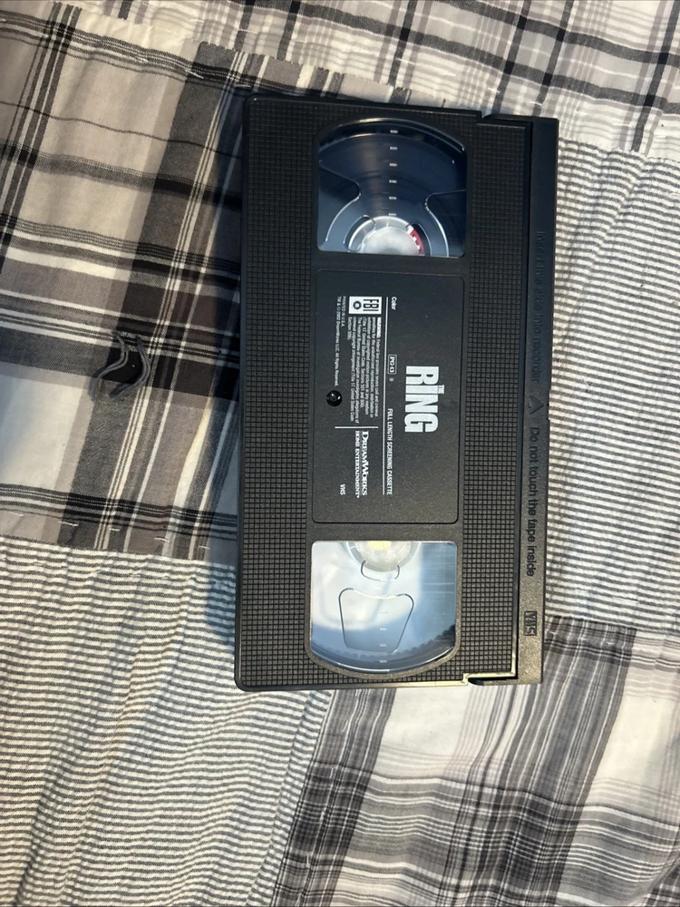 The product is a rare screening VHS cassette of the movie "The Ring" directed by Gore Verbinski and released by DreamWorks Home Entertainment in 2003. The VHS features the English language with NTSC signal standard and is rated PG-13. It does not have a former rental label, making it a sought-after collector's item for fans of horror and cult films. This excellent condition VHS tape provides a unique viewing experience of the iconic horror film "The Ring."