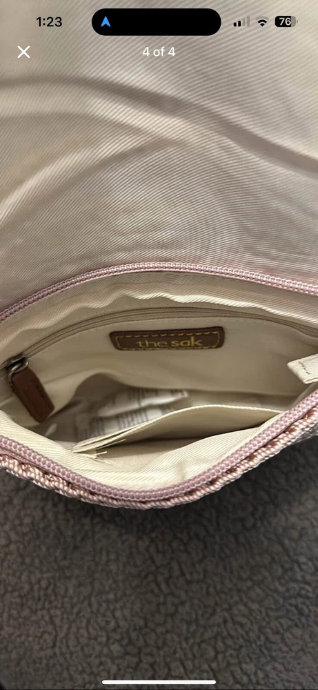 Embrace the bohemian elegance with The SAK Crochet Craze Crossbody Bag. This charming small-sized purse features a vibrant mix of stripes, with a crochet handle and strap that add a touch of artisanal flair to your casual ensemble. The textile exterior is complemented by a soft pink lining, ensuring your essentials are cradled in style. The bag offers a secure closure with both a flap and zip, and it's adorned with a delightful bag charm for an extra pop of personality. Ideal for those who appreciate vintage aesthetics and The Sak's quality craftsmanship, this bag from the Crochet Craze product line is a versatile accessory for any woman's wardrobe.
