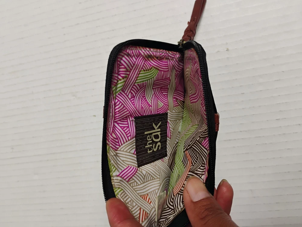 The Sak Leather Iris Card Wallet Case Black With Brown Trim