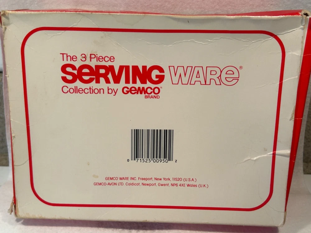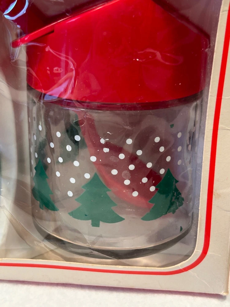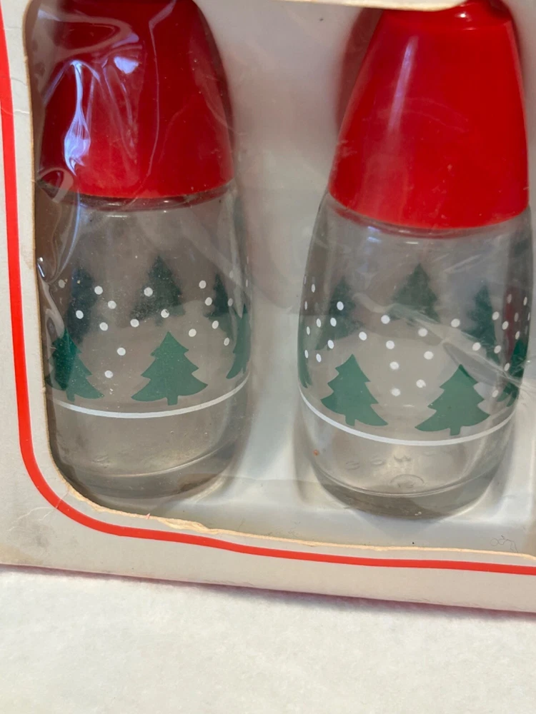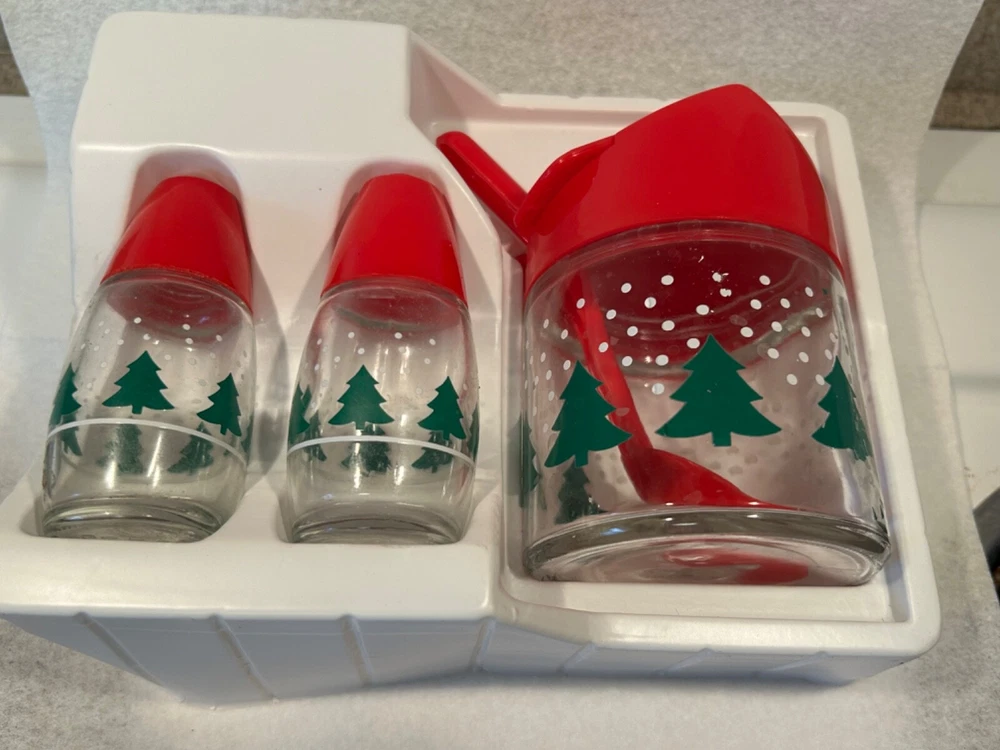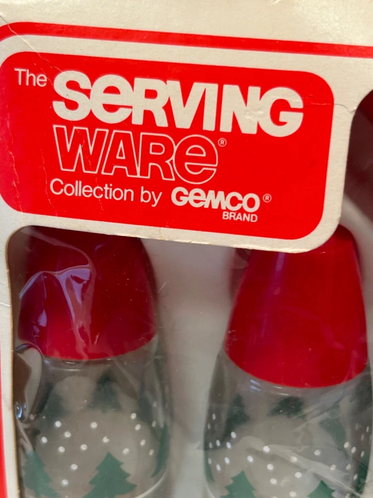 Gemco Christmas servingware set Sugar with spoon and salt and pepper. Has orginal box but shows ware. Please see photos for condition.