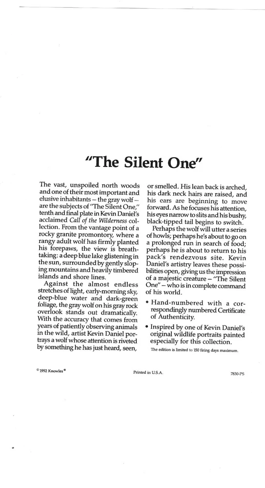 The Silent One, Call of the Wilderness # 10, Kevin Daniel, EM Knowles China