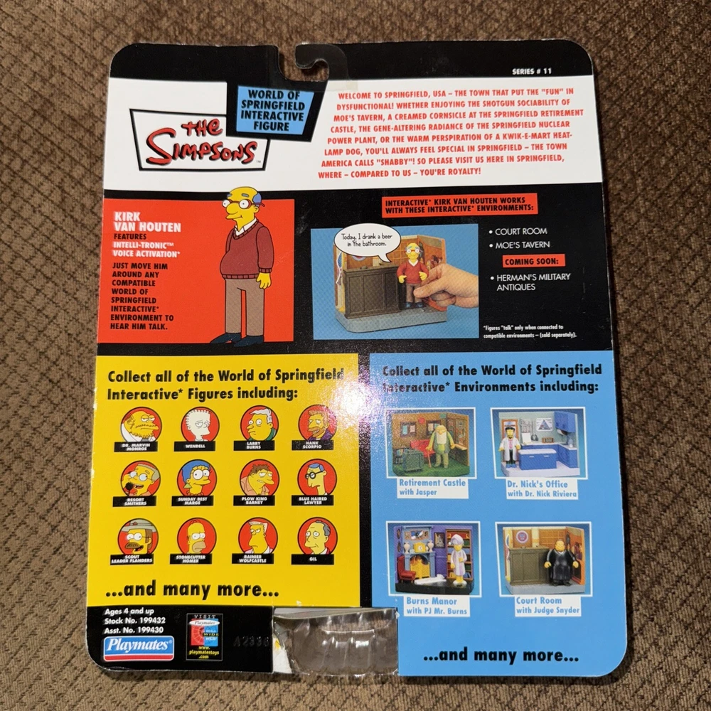 Introducing the newest addition to your The Simpsons action figure collection- the Kirk Van Houten figure from Series 11! This highly detailed and collectible toy is manufactured by Playmates Toys, ensuring its quality and authenticity. Representing one of the most iconic families in the world, this action figure is a must-have for any true fan of The Simpsons. Featuring intricate design and attention to detail, this action figure is perfect for display or play. The Kirk Van Houten figure is part of the Toys & Hobbies category and is specifically designed for collectors of action figures. Don't miss out on the chance to add this amazing piece to your collection! No barcode in the back .