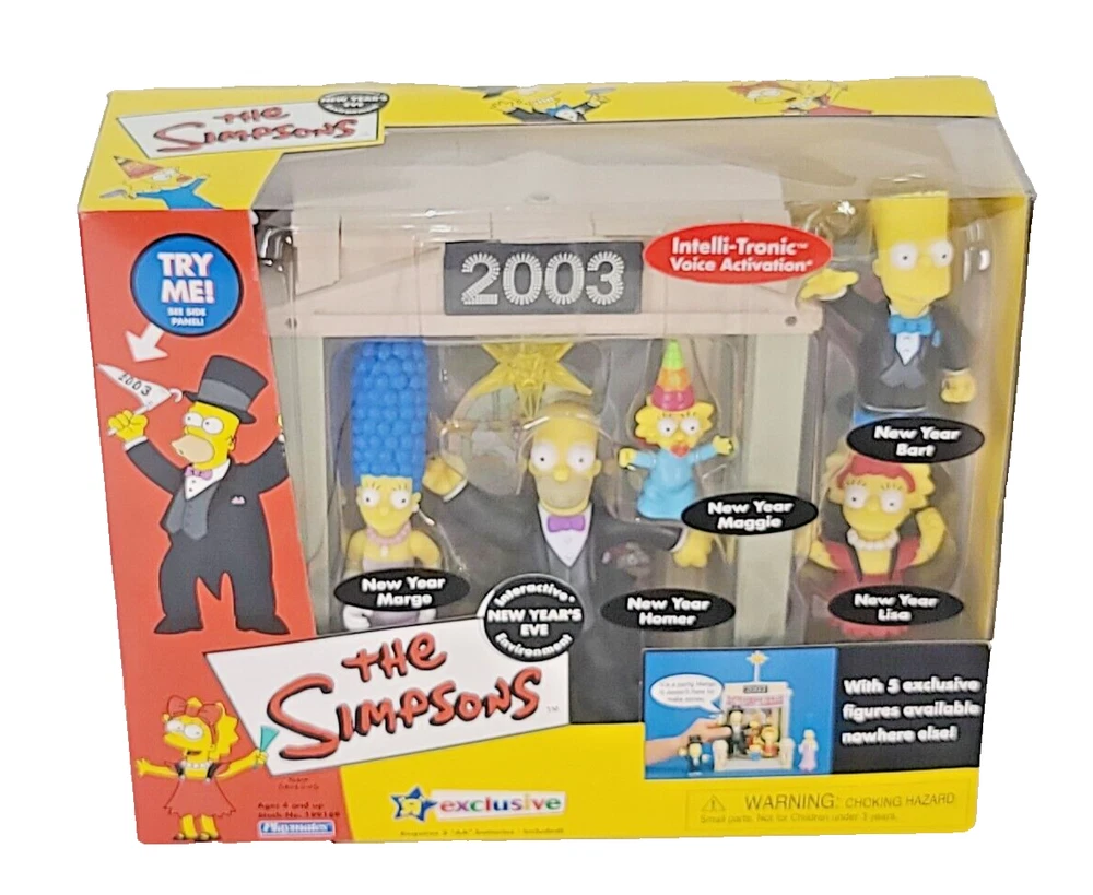 This exclusive Playmates Toys playset features 5 figures from the beloved TV show, The Simpsons. The colorful plastic figures include Lisa Simpson, Homer Simpson, Bart Simpson, Maggie Simpson, and Marge Simpson, all decked out in New Years celebration outfits and all exclusive to this special set. The playset was an exclusive release from Toys R Us in 2003 and is sure to be a prized possession for years to come. This vintage Simpsons action figure set is brand new and factory sealed. The packaging is in excellent condition. This item has always been handled and stored extremely carefully as a collectible. P lease check the photos for details. Pictures are of the actual item. This item will be carefully packaged for safe shipment. Thanks for looking! ProThrift is a grassroots rehome operation for donations. Our mission is to find a new home for gently used goods in order to recycle, raise awareness, preserve the resources of our planet and keep useful things out of the landfill. We do our absolute best to thoroughly test, clean and inspect every item that comes through our doors. On occasion we may overlook something small so please do not hesitate to let us know if any item you receive is not up to the standard you expect and we will be happy to make things right. Our passion is to give the donations we receive a new home and make each and every new owner happy by contributing in a positive way. Thank you for looking and for supporting our community here at ProThrift!