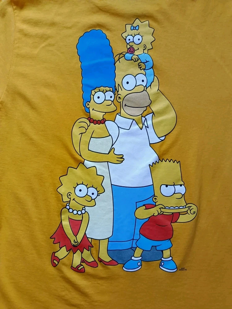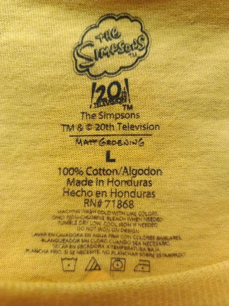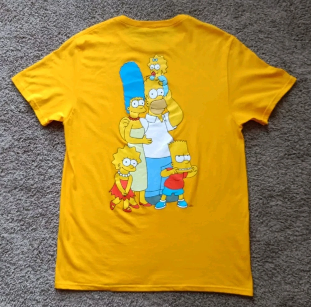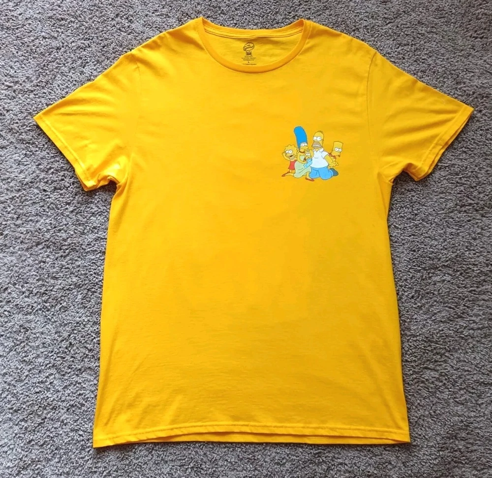 The Simpsons T-Shirt Men's Size Large Double Graphic Yellow Short Sleeve -Preowned In Amazing Condition No Rips Or Stains -Pit To Pit (20 inches) -Length. (31 inches)