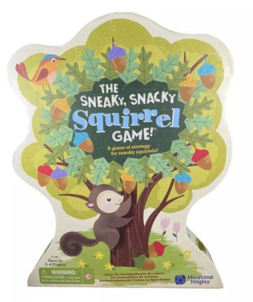 Learning Resources Ed in Sneaky Snacky Squirrel Ages 3+. Condition is "Used". Product Description Your forest friends are hungry and they need your help. Spin the spinner, squeeze the matching colored acorn with your squirrel squeezer, and place it into your log. Be the first to fill your log with delicious acorns and you win. You could also spin pick an acorn, steal an acorn, or lose an acorn, so be strategic, little squirrel. For grades Pre-K+/Ages 3+. 2 to 4 player game. Includes one squirrel squeezer, 20 colored acorns, four logs, one game spinner and game board (doubles as packaging.). Develops matching, sorting, strategic thinking, hand-eye coordination, fine motor skills and pre-handwriting skills.