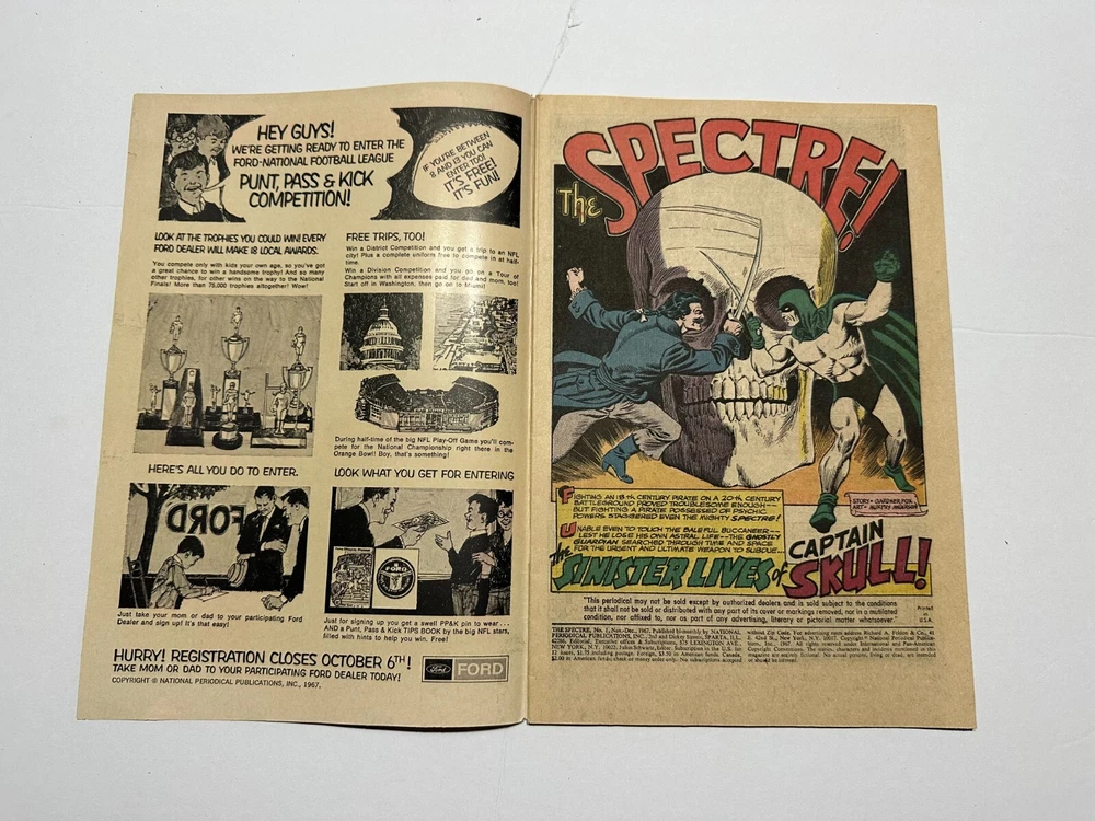 Dive into the Silver Age of comics with The Spectre #1, an iconic addition to any comic book collection. Published by DC Comics between November and December 1967, this issue features the gripping tales of Jim Corrigan, a civilian pilot who becomes the supernatural hero Spectre, and his adversaries, notably the nefarious Captain Skull.The comic is the brainchild of the legendary team of Gardner Fox and Murphy Anderson, with Anderson himself lending his artistic prowess to the cover. Rich in superhero genre nostalgia, it's a must-have for enthusiasts of classic American comics and admirers of the rich tradition of US comic book storytelling.
