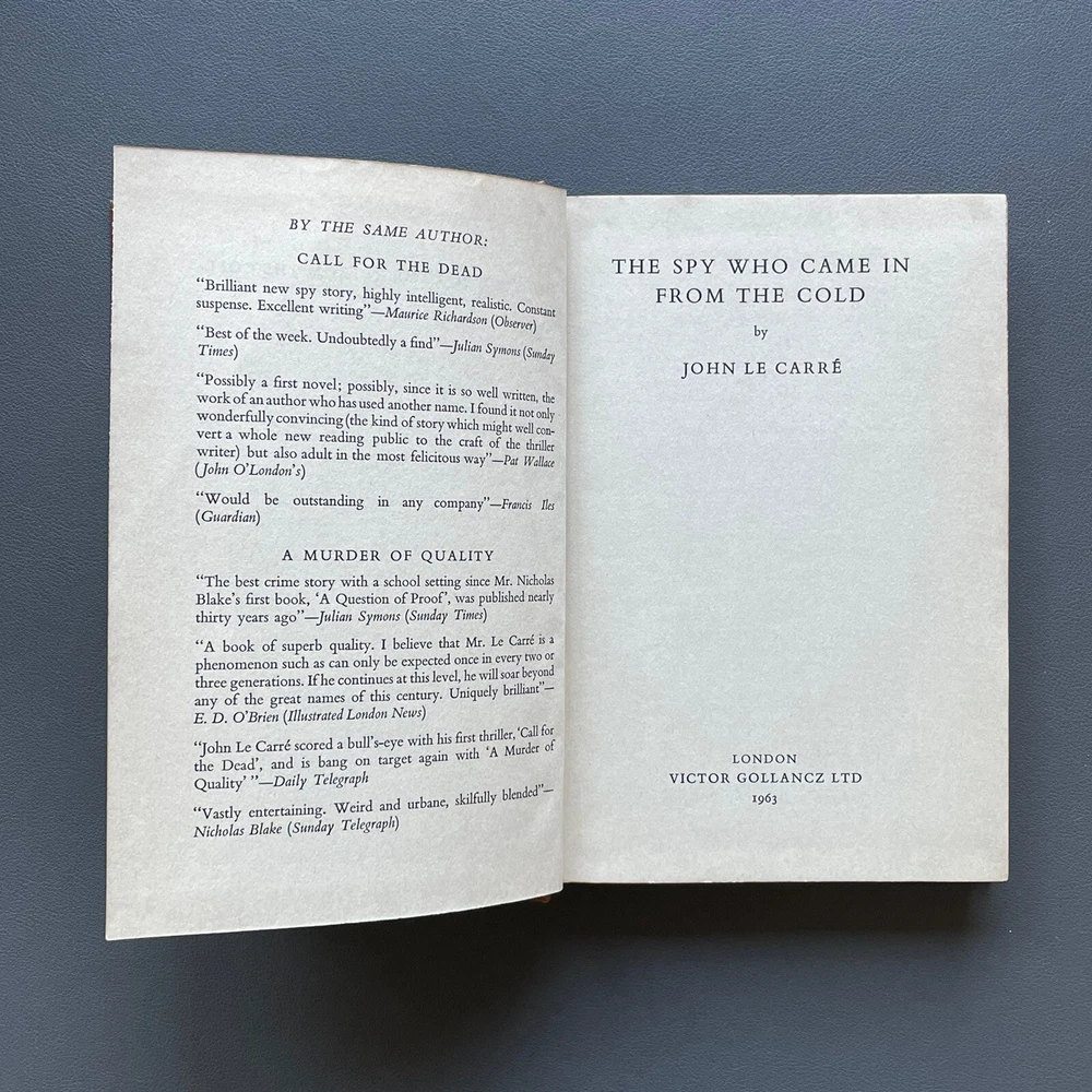 The Spy Who Came In From The Cold | First Edition/First Impression (UK) | 1963 | John Le Carré | Very Good and Like New Title: The Spy Who Came In From The Cold Author: John Le Carré Publisher: Gollancz, London Year: 1963 Country: UK Edition: First Edition (UK) Binding: Hardback Condition: Very Good | BOOK CONDITION | THE SPY WHO CAME IN FROM THE COLD | 1963 Hardback Condition: Very Good. Dust Jacket Condition: Good. 1st Edition/1st Impression (UK) The original dust jacket is clean with minor wear along top and bottom edges. There are two small linear tears along the front and back flap hinges and some minor chipping to the top & tail of the spine - however the book title and publishers logo are fully legible. The spine has been sunned and therefore has a lightened tone from its original red. The internal, lower front turn and back turn has a small water mark, however this is isolated to the dust jacket only and is not present on the exterior boards or the interior of the book itself. It has not been price clipped and displays the original price tag ‘18/- net’. The external boards are clean with some minor shelf wear top and tail of spine. The interior papered boards are clean, however there is a previous owners inscription/name in ink on the front free endpaper. All pages clean and tightly bound. No spillage marking or underlining within text. Burnt orange cloth covered hard boards with gold gilt lettering on spine. Please see attached pictures. Overall the book is in very good condition and would make a great addition to a John Le Carré collection. | THE SPY WHO CAME IN FROM THE COLD STORYLINE | In this classic, John le Carre's third novel and the first to earn him international acclaim, he created a world unlike any previously experienced in suspense fiction. With unsurpassed knowledge culled from his years in British Intelligence, le Carre brings to light the shadowy dealings of international espionage in the tale of a British agent who longs to end his career but undertakes one final, bone-chilling assignment. When the last agent under his command is killed and Alec Leamas is called back to London, he hopes to come in from the cold for good. His spymaster, Control, however, has other plans. Determined to bring down the head of East German Intelligence and topple his organization, Control once more sends Leamas into the fray -- this time to play the part of the dishonored spy and lure the enemy to his ultimate defeat. | SELLERS INFORMATION | All books will be securely packaged and shipped with care. Postage can be shared between multiple items, so please take a look at the other items for sale. Our packaging, with the exception of our sticker, is 100% compostable and biodegradable. Our book wrap is a safe, environmentally friendly book wrap that is Forest Stewardship Council certified. In addition our paper bubble wrap is an eco friendly alternative and is made from recycled paper. Any questions or queries please do not hesitate to get in contact. Many thanks, Endpaper Books 📚 Follow us on Instagram @ endpaper_books 📸