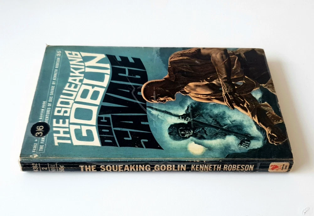 "The Squeaking Goblin" by Kenneth Robeson is a superhero book published by Bantam. This first edition features a softcover with wraps and comes in foil.